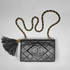CHANEL Dimond CC Vintage Black Quilted Flap Bag