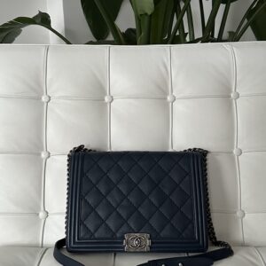 Chanel Boy klasyka granat skóra