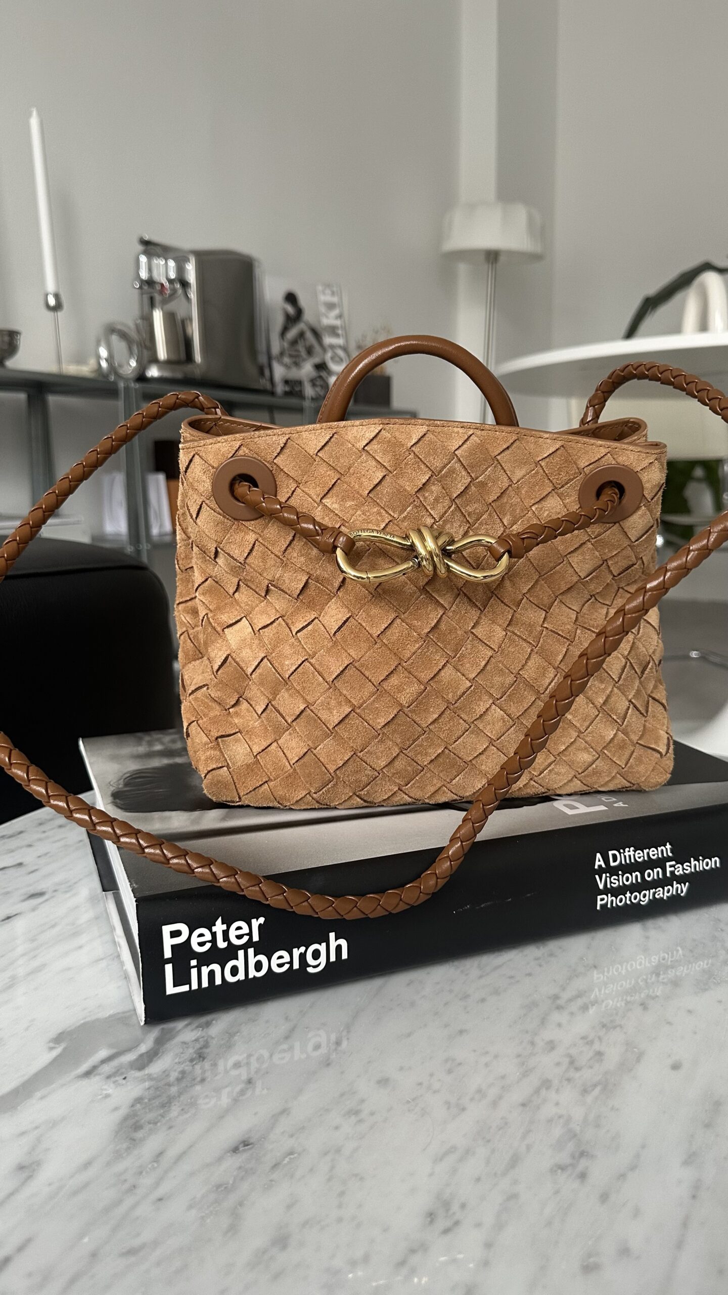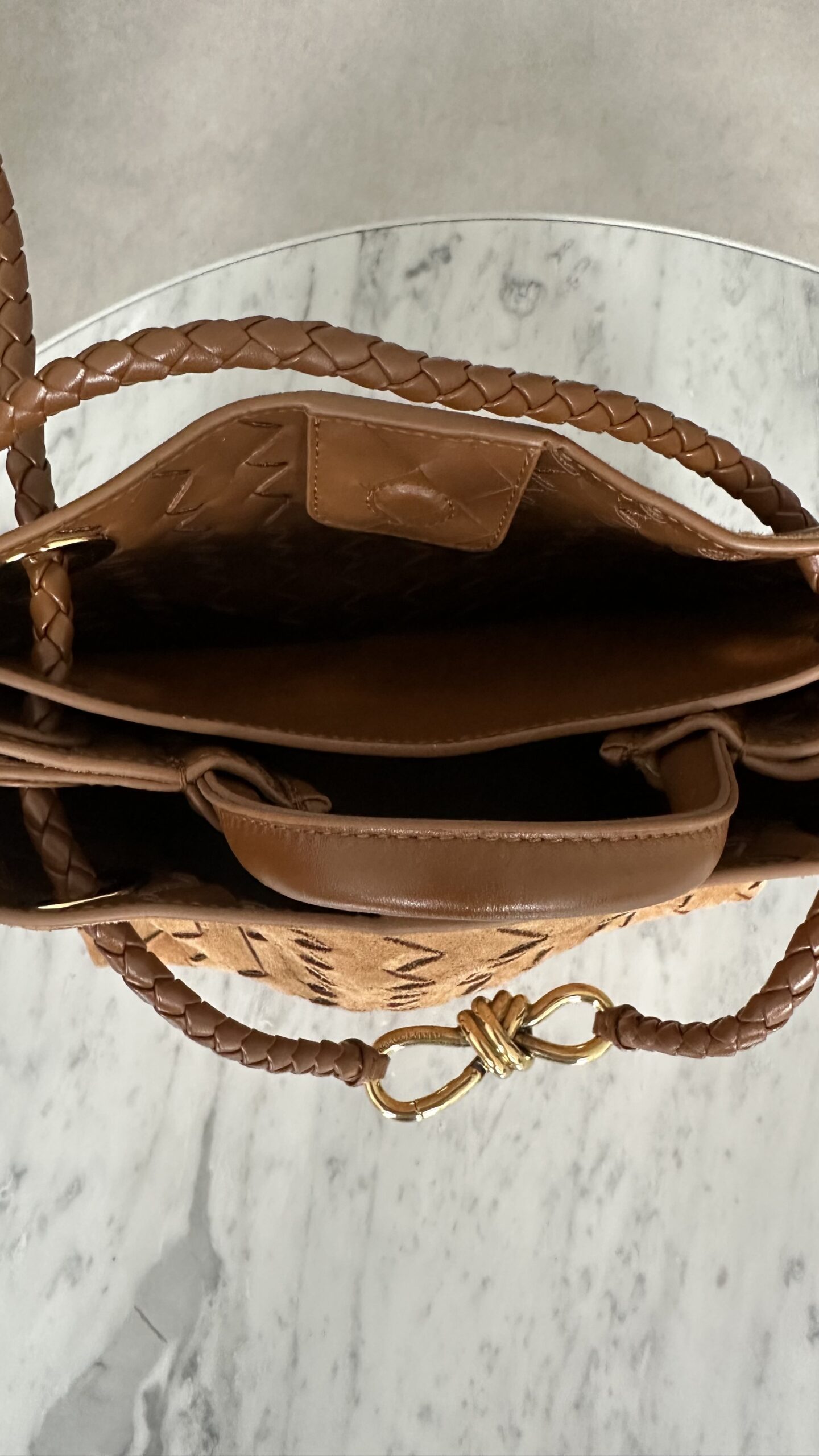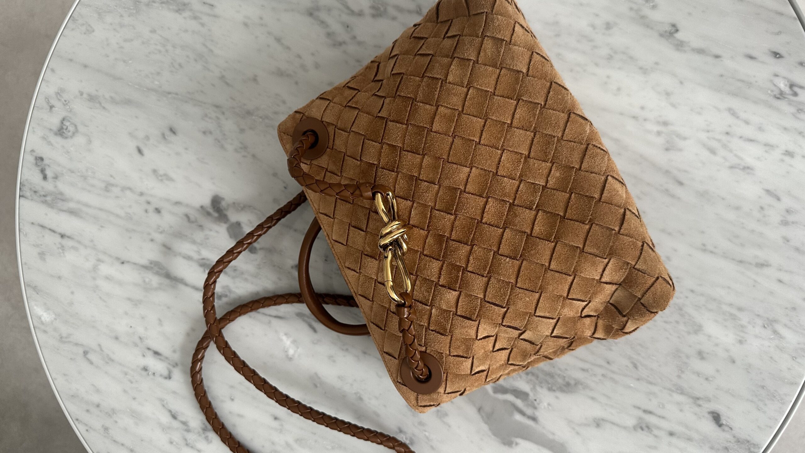 Bottega Venata Andiamo ruda zamszowa torebka