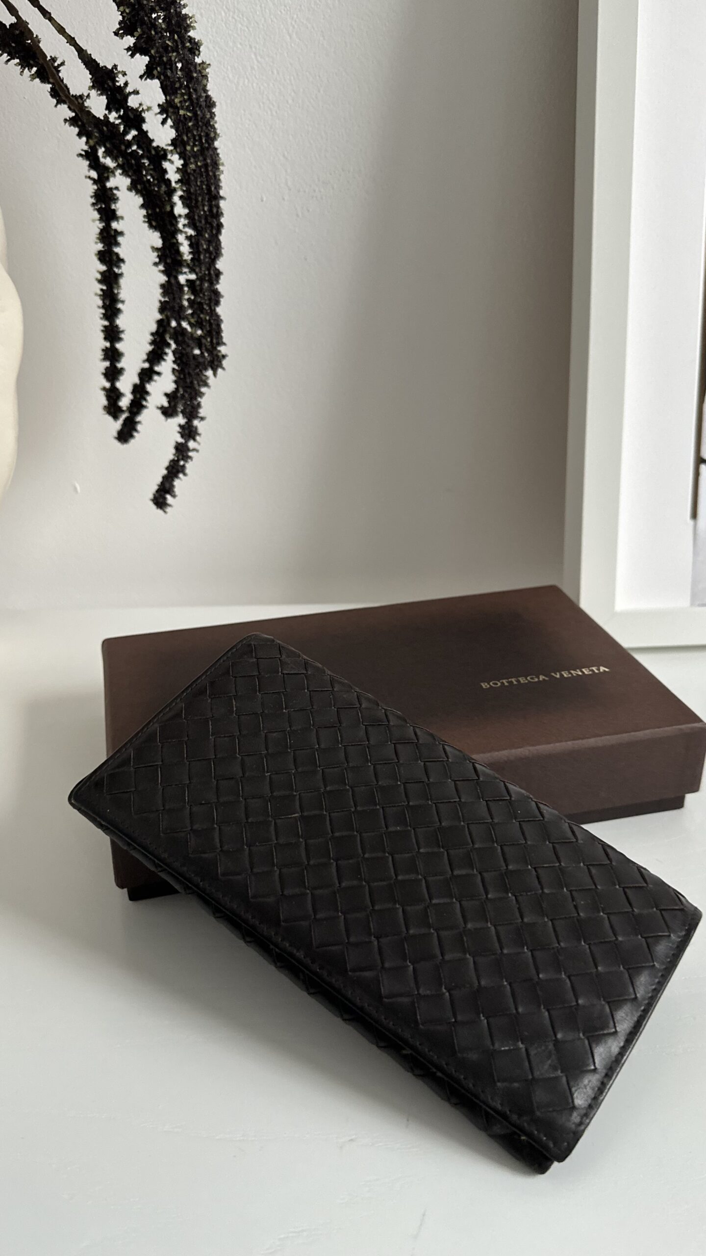 Bottega Veneta czekoladowy klasyczny portfel vintage