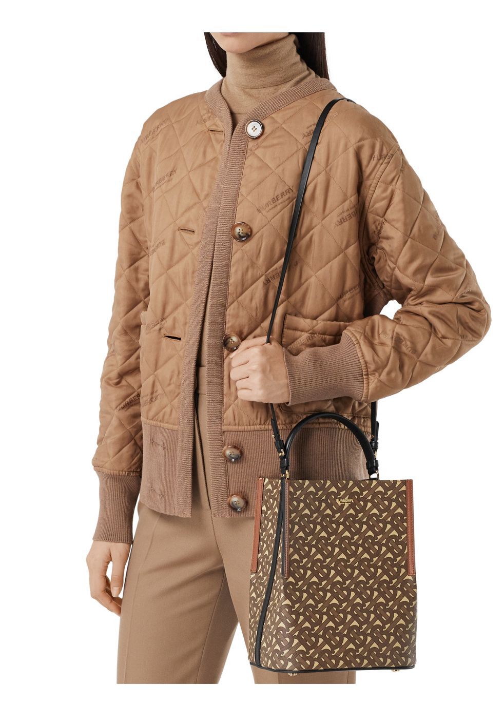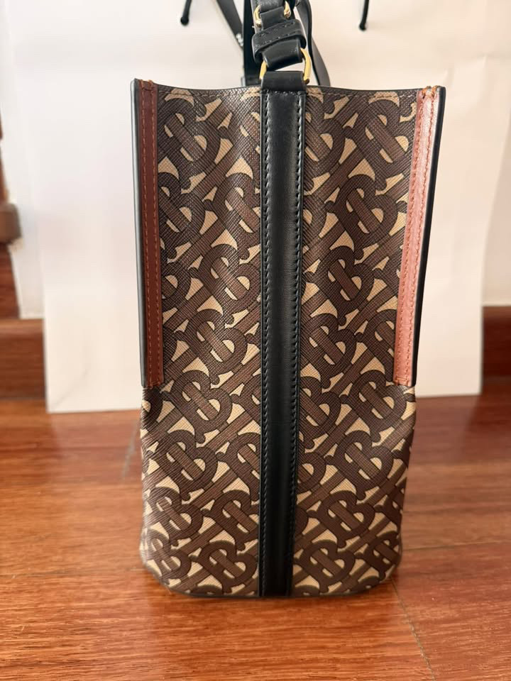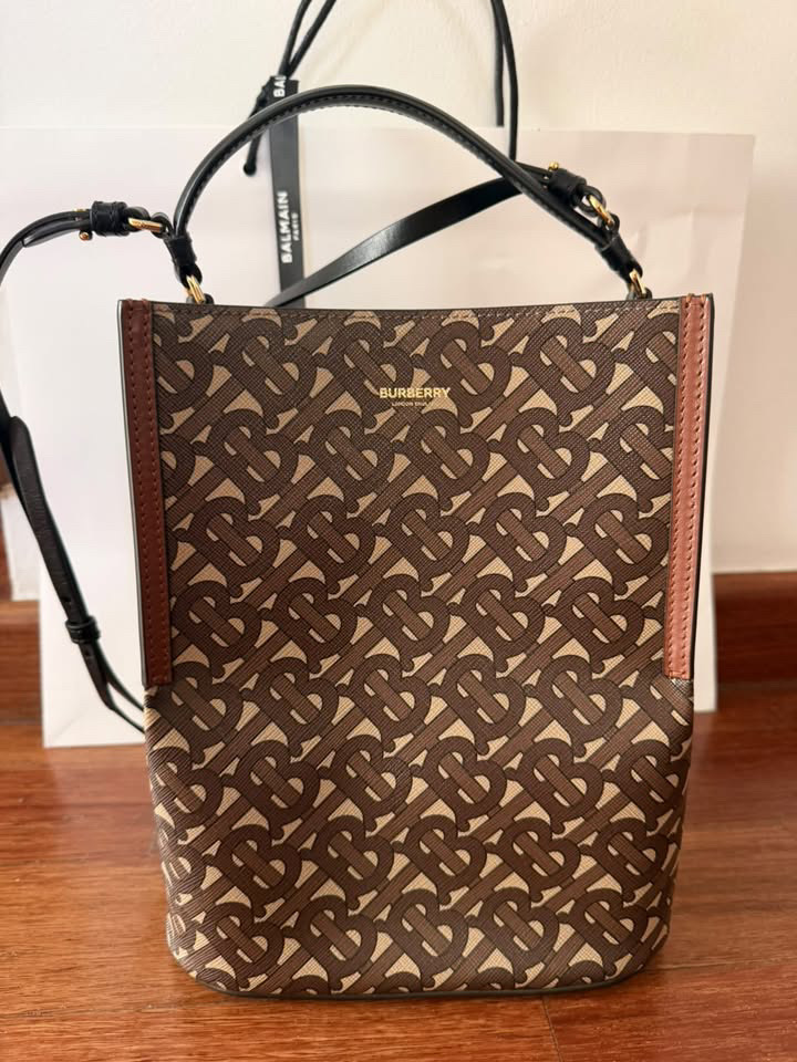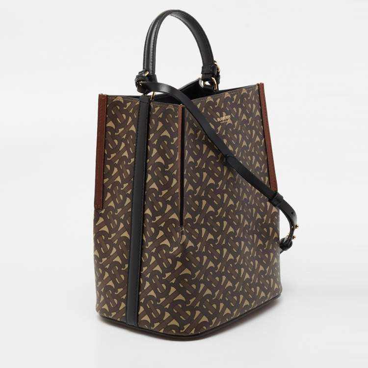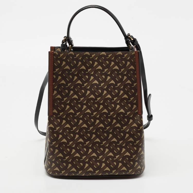 Burberry Brown TB Monogram Coated Canvas and Leather Small Peggy Bucket Bag