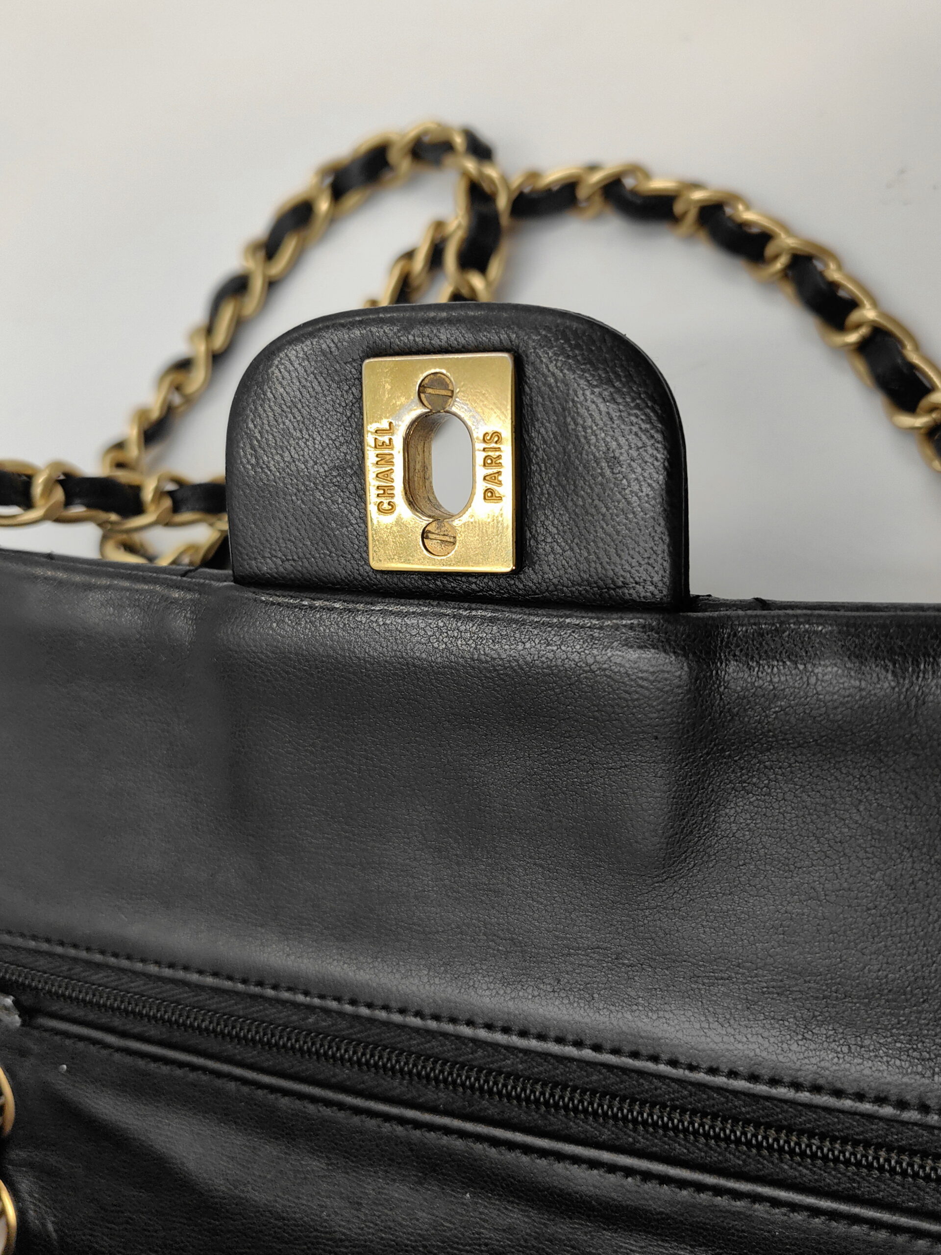 CHANEL Vintage Classic Double Flap Bag z czarnej pikowanej skóry z okuciami platerowanymi 24-karatowym złotem.
