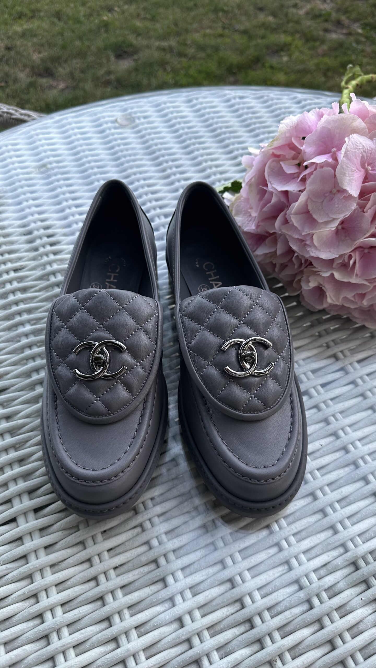 Chanel klasyczne mokasyny w szarym kolorze 36,5