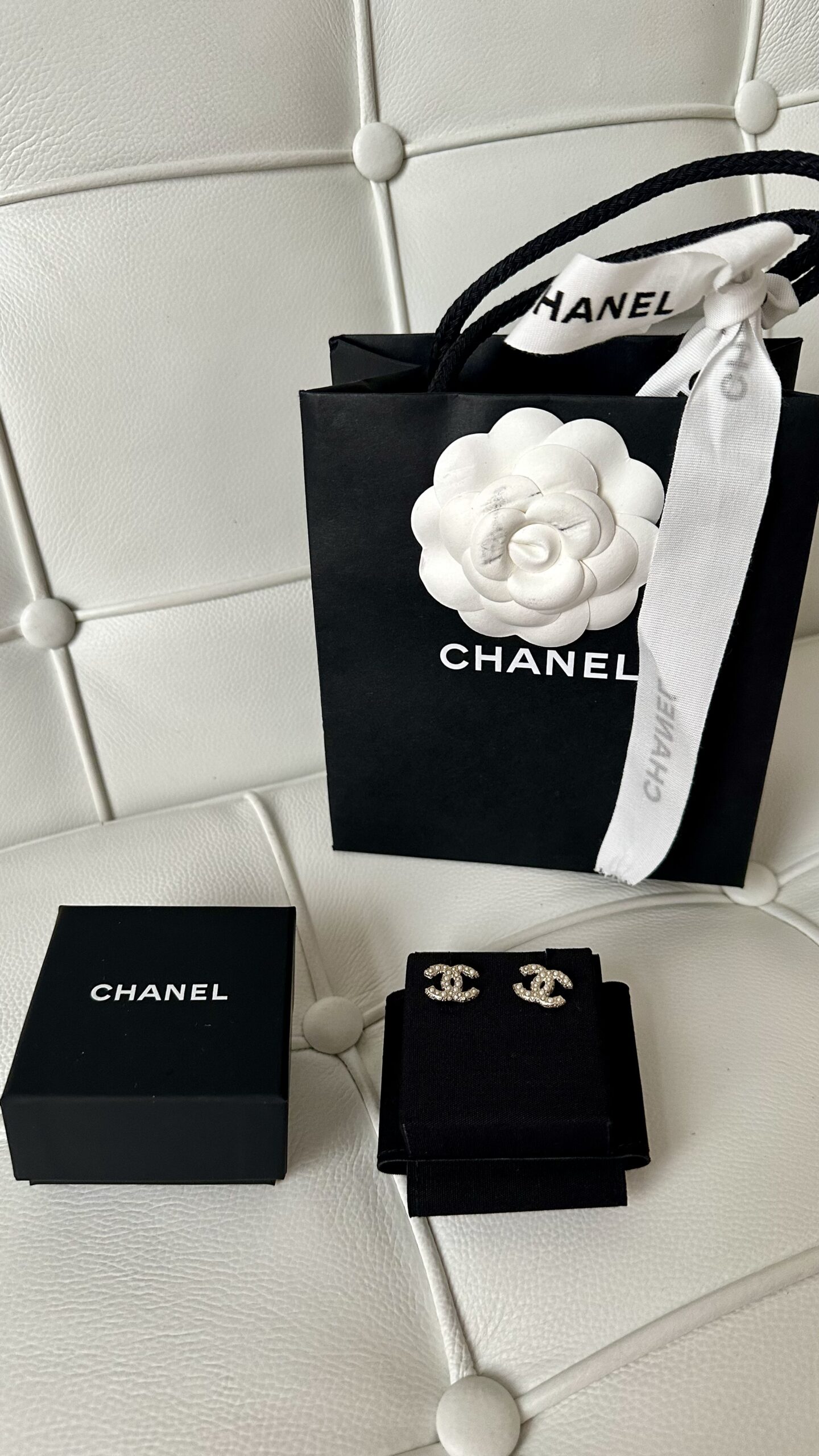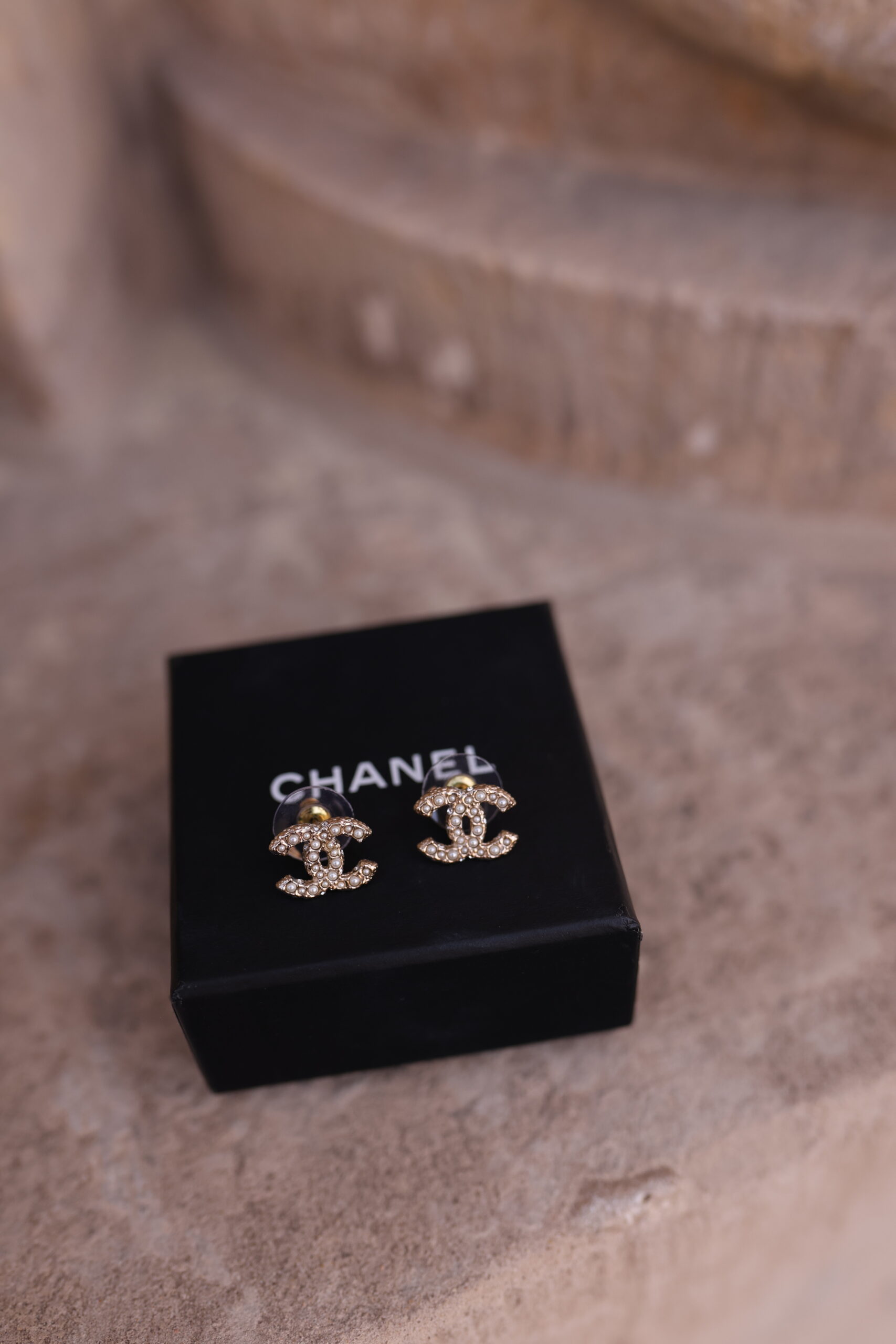 Chanel kolczyki perełki złoto szampańskie