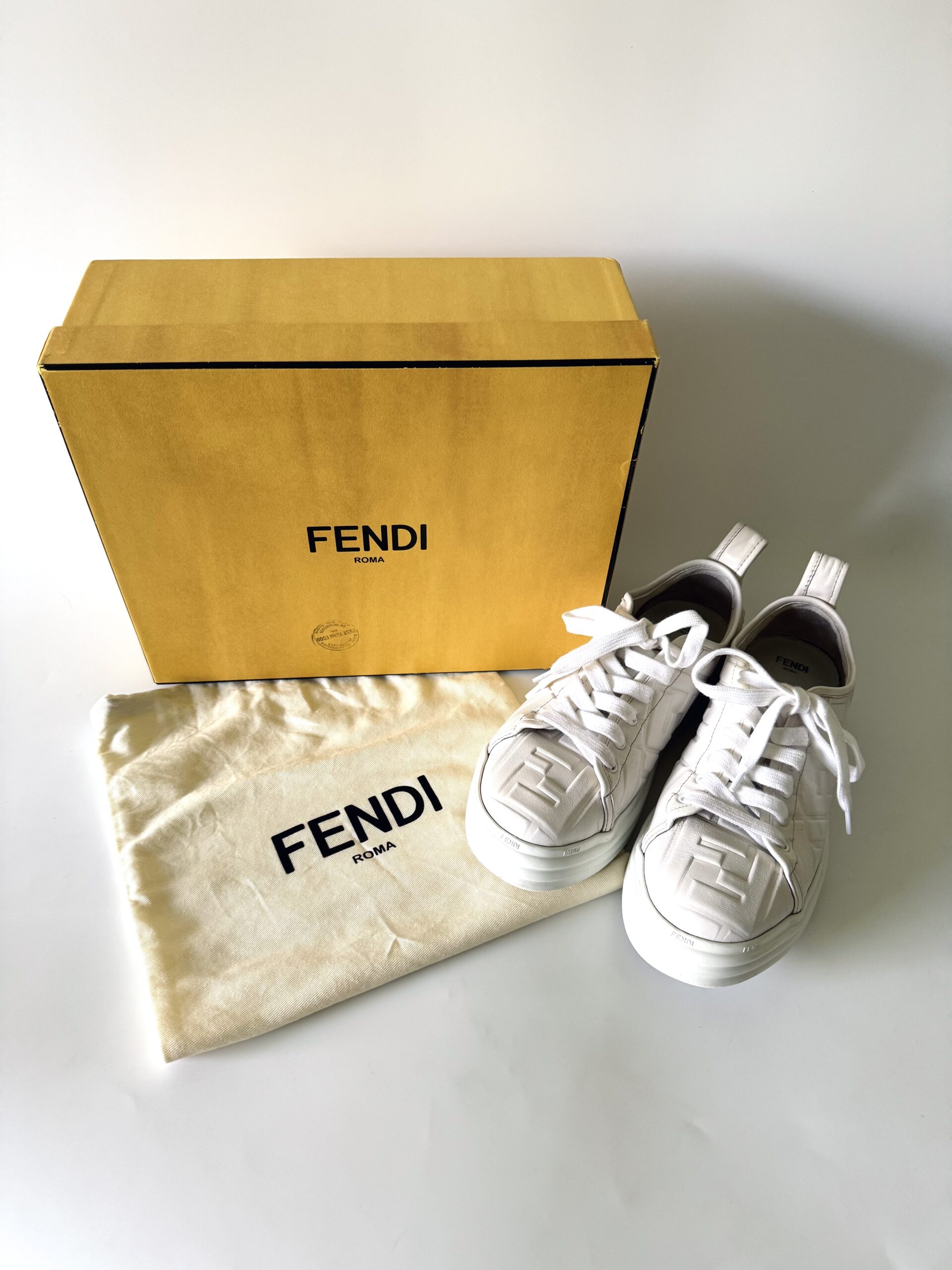 FENDI Embossed Leather Monogram Rise Sneakers – sneakersy/ trampki