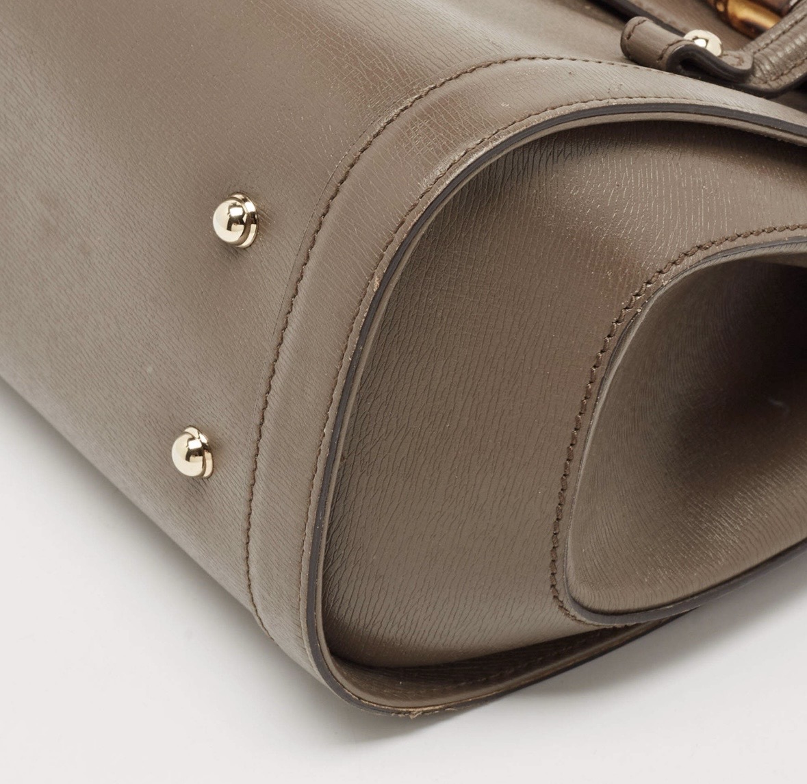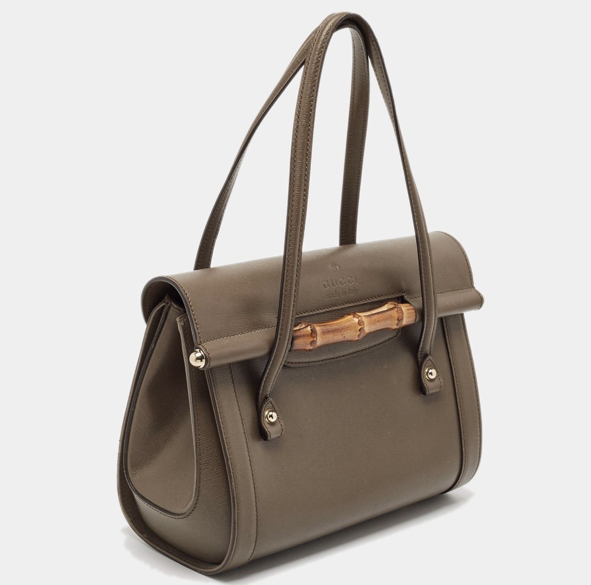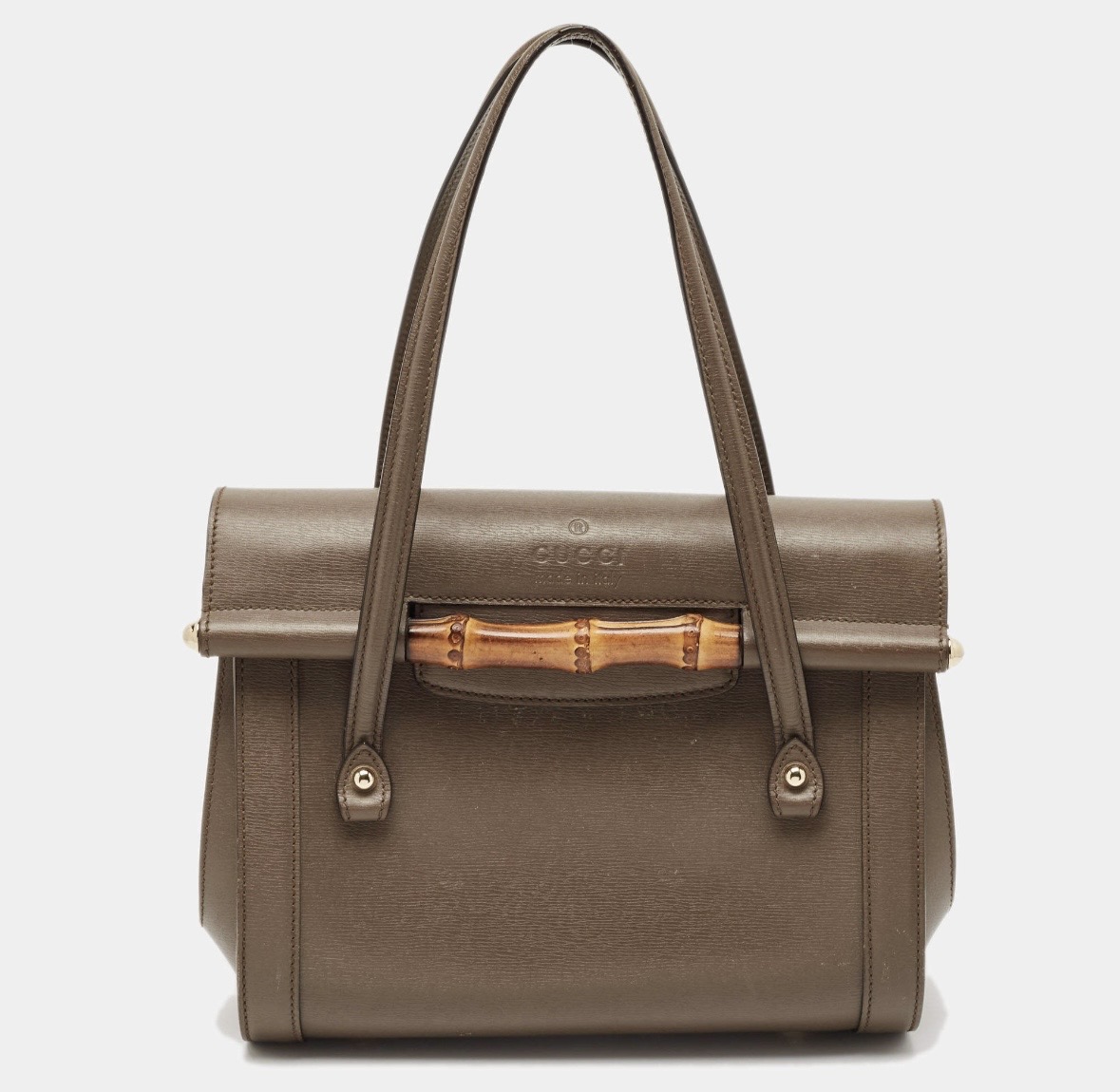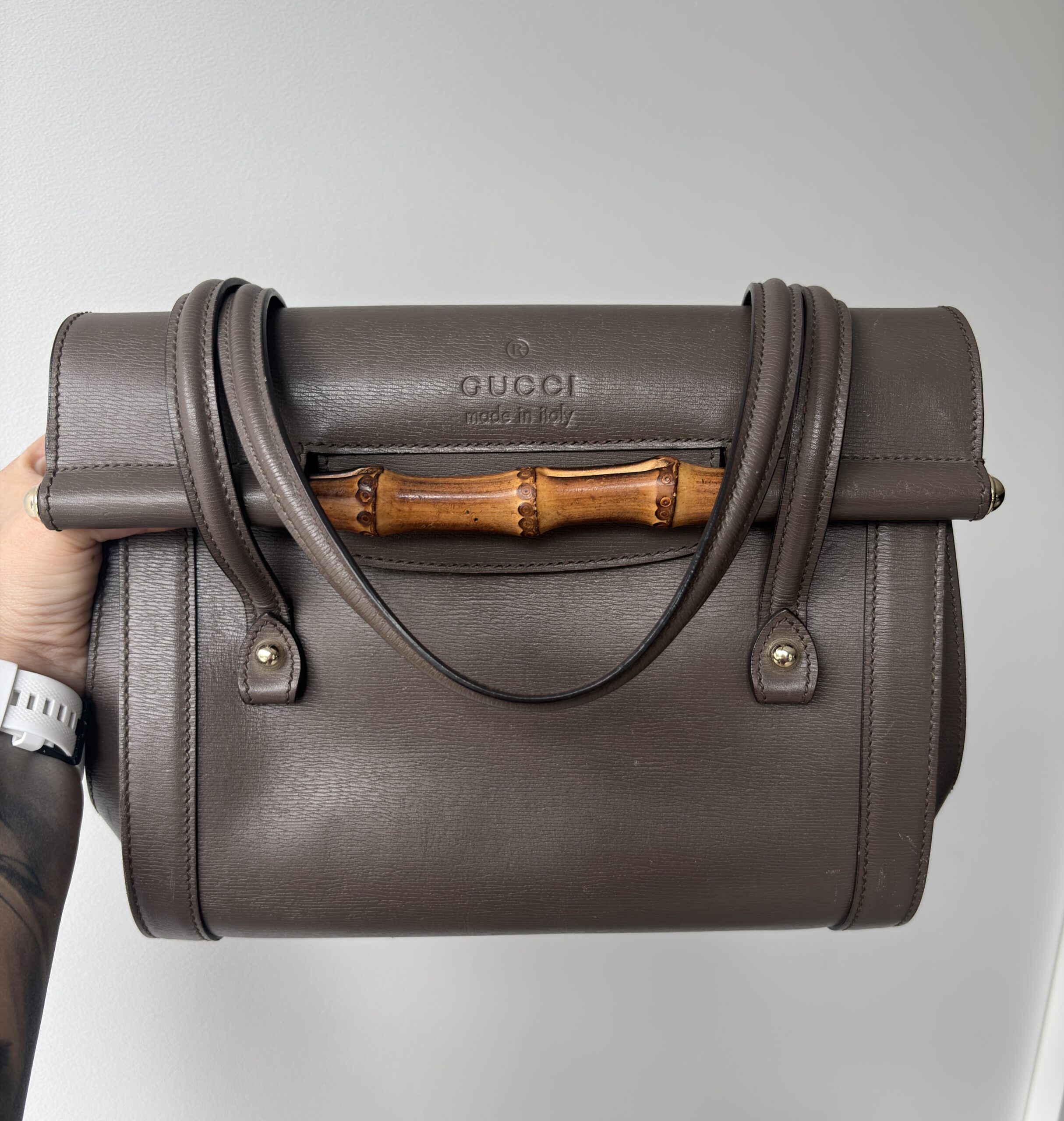 Gucci taupe grey leather medium new bullet bamboo bag