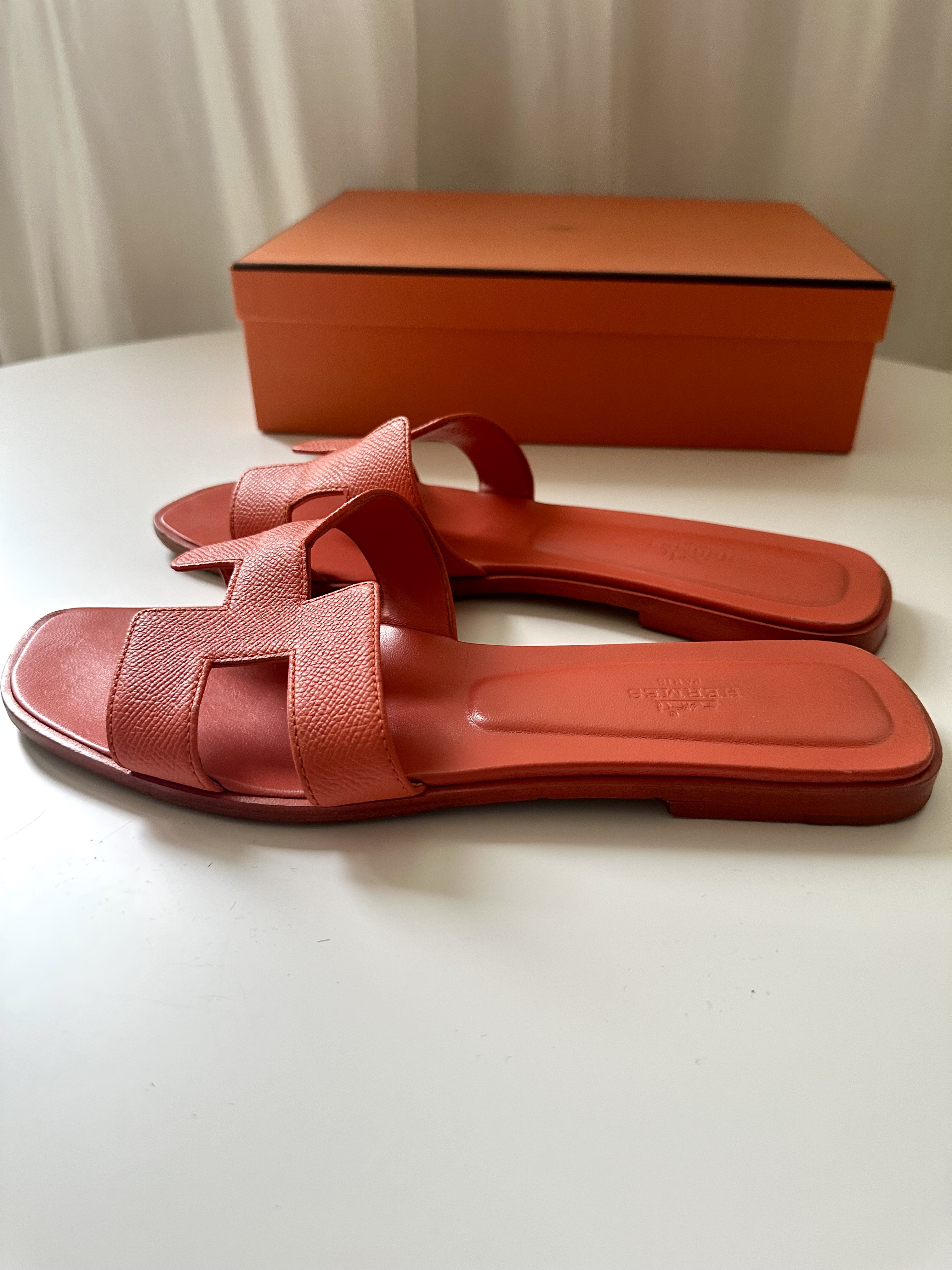 Hermes Oran pomarańczowe klapki 40