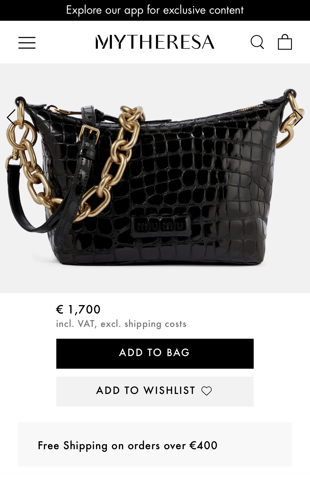 MIU MIU Croc-effect leather shoulder bag – torebka