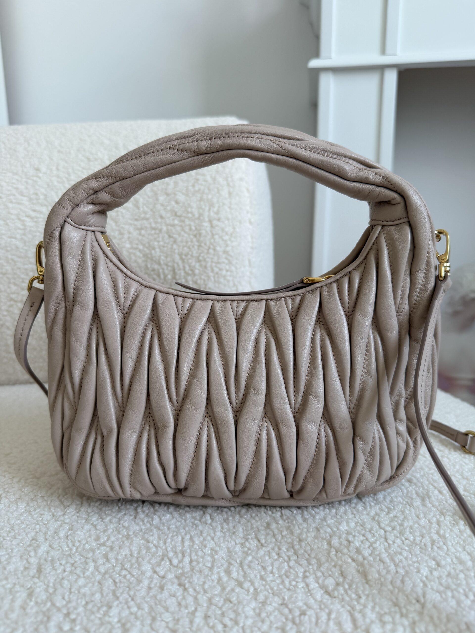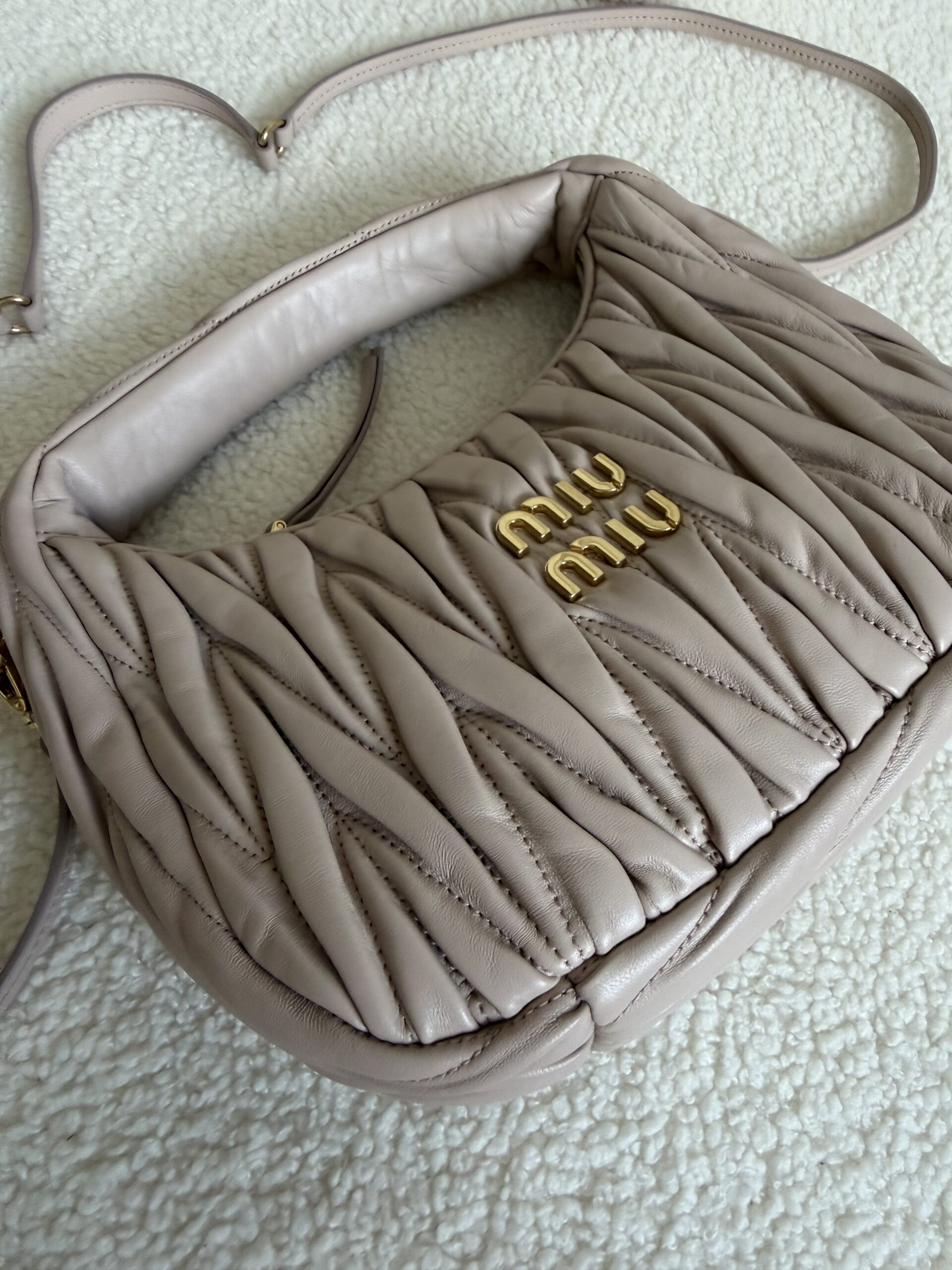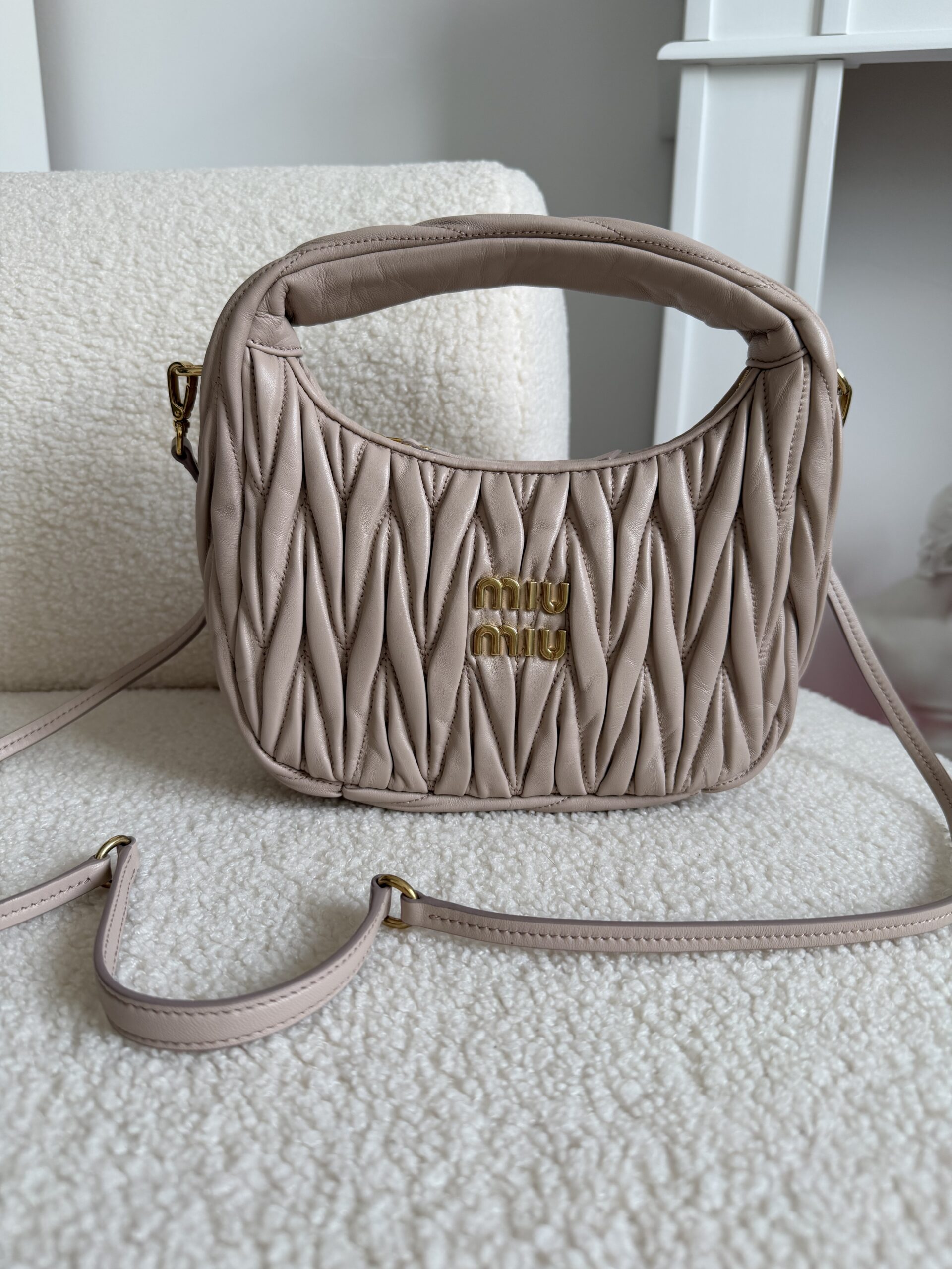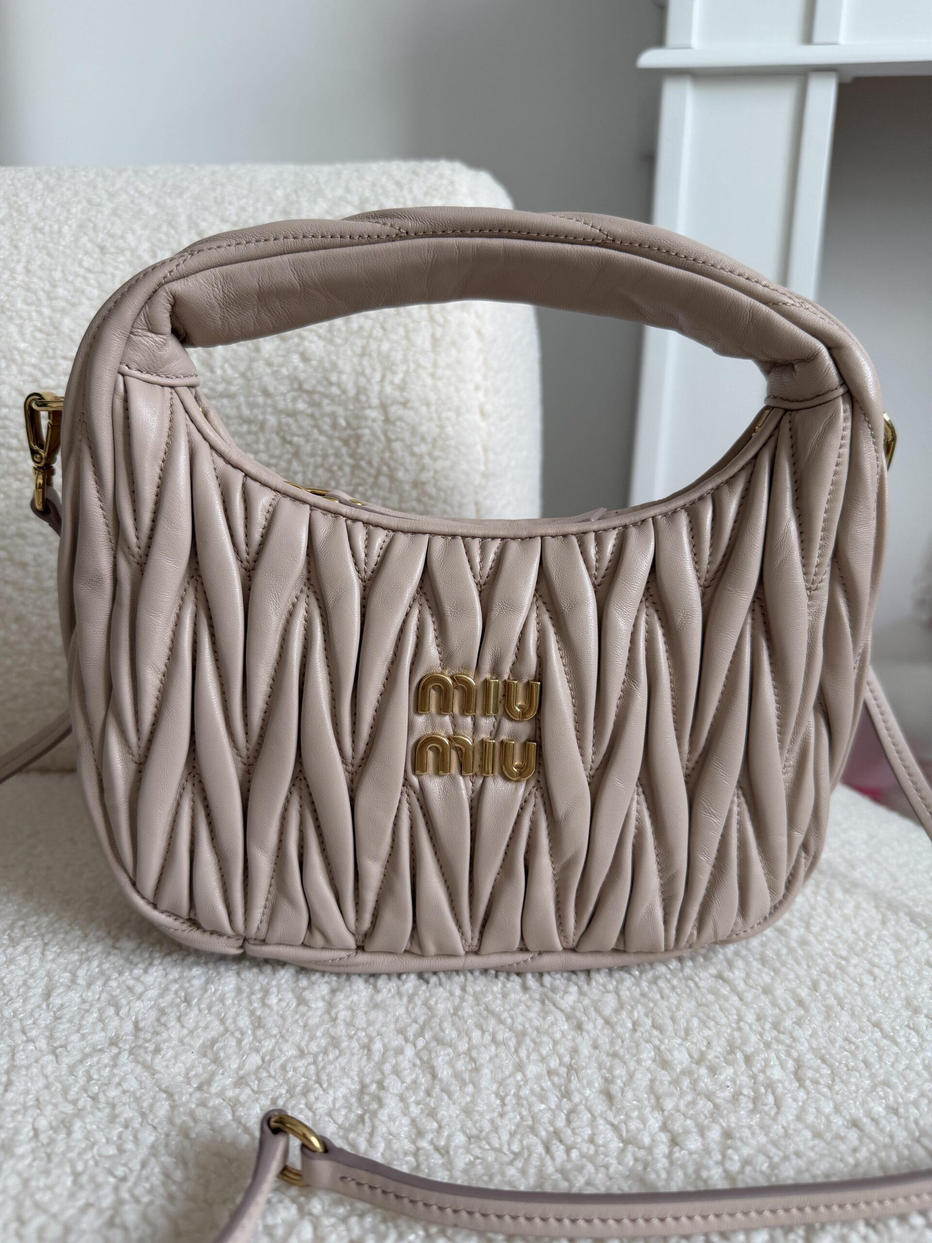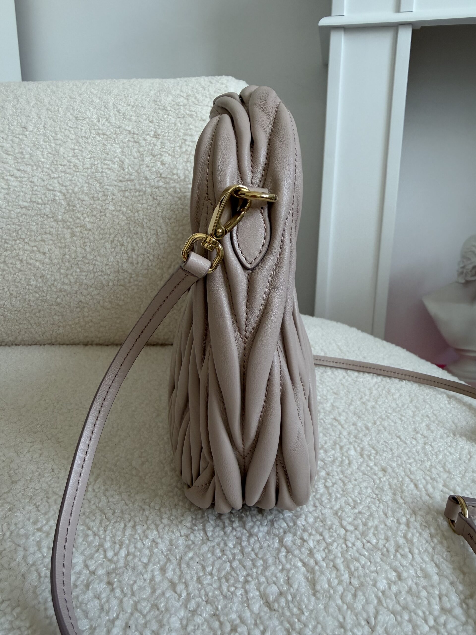 Miu miu Wander matelassé nappa Pudrowy róż