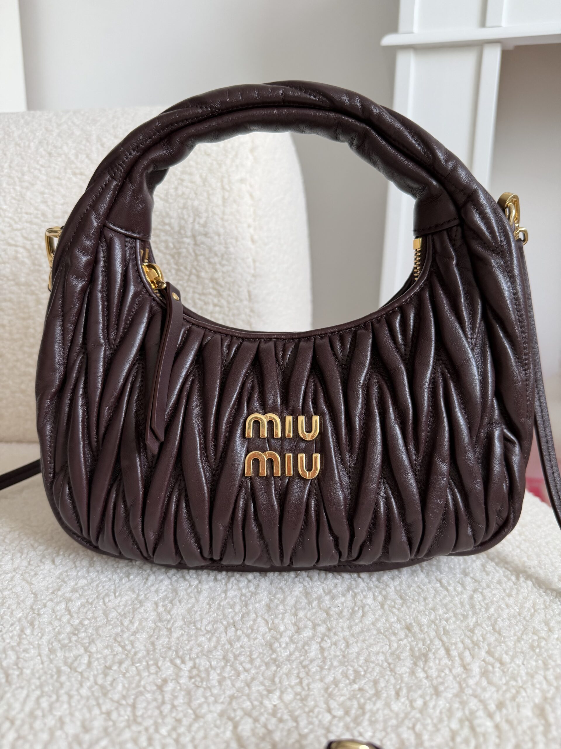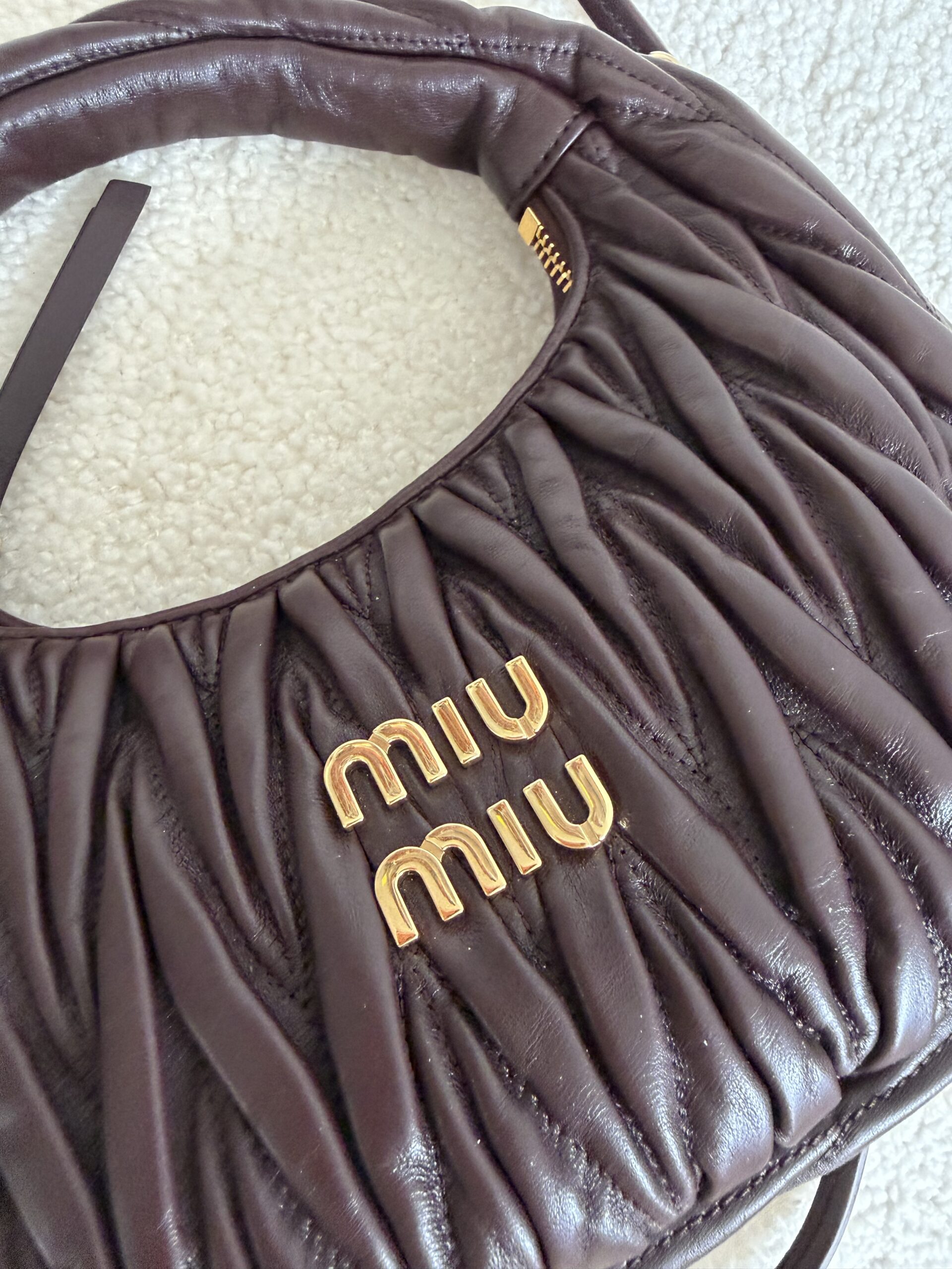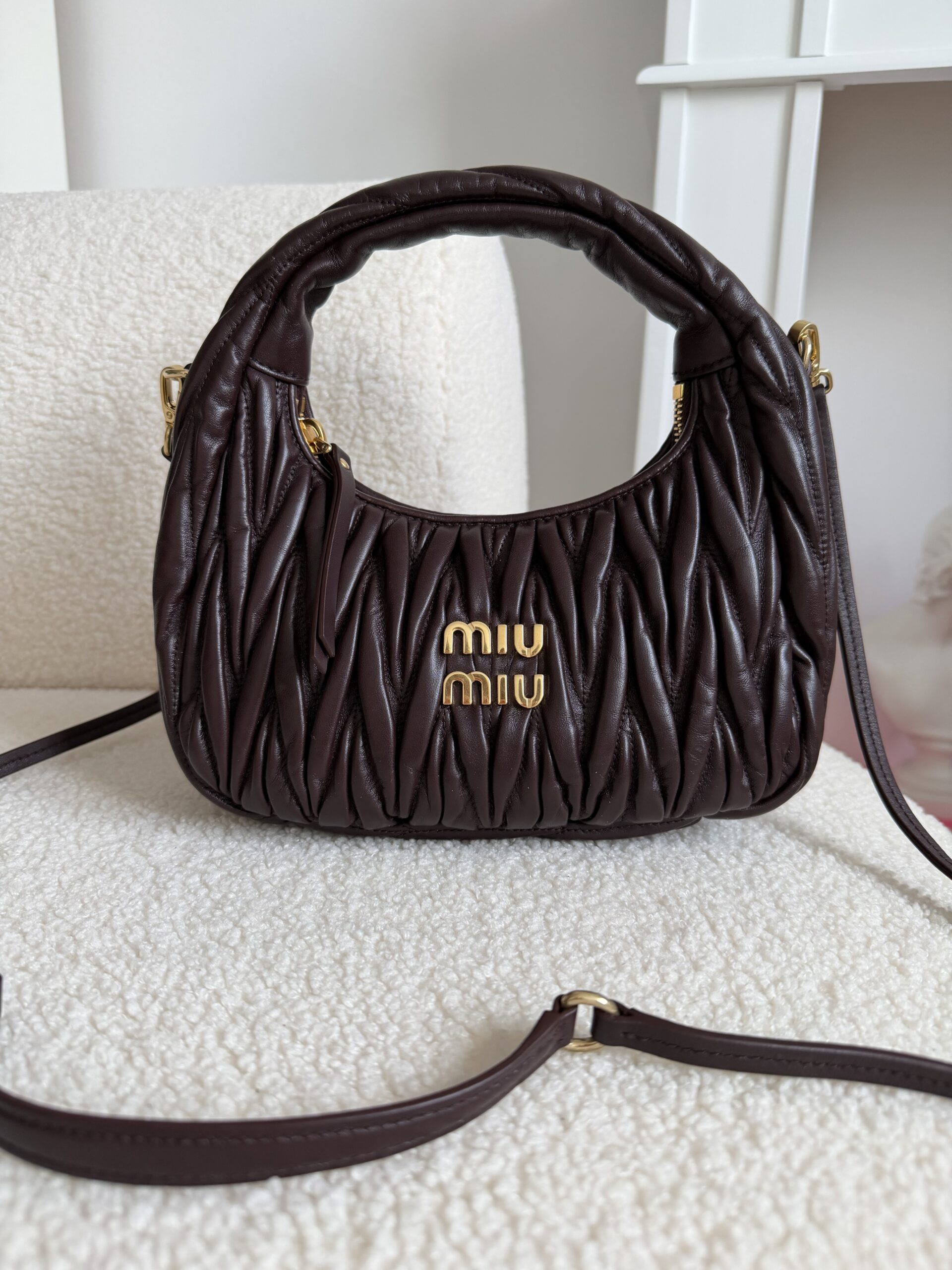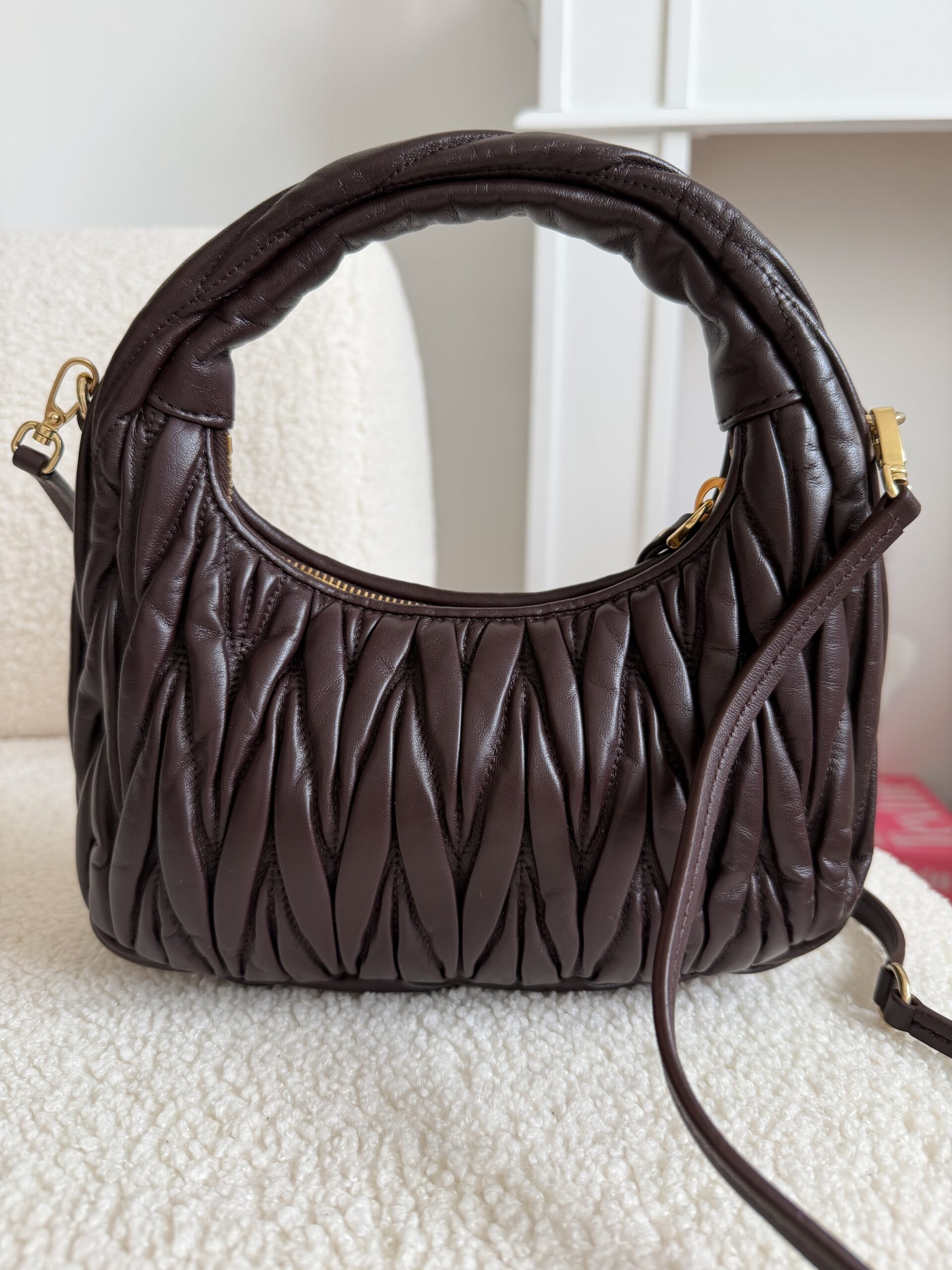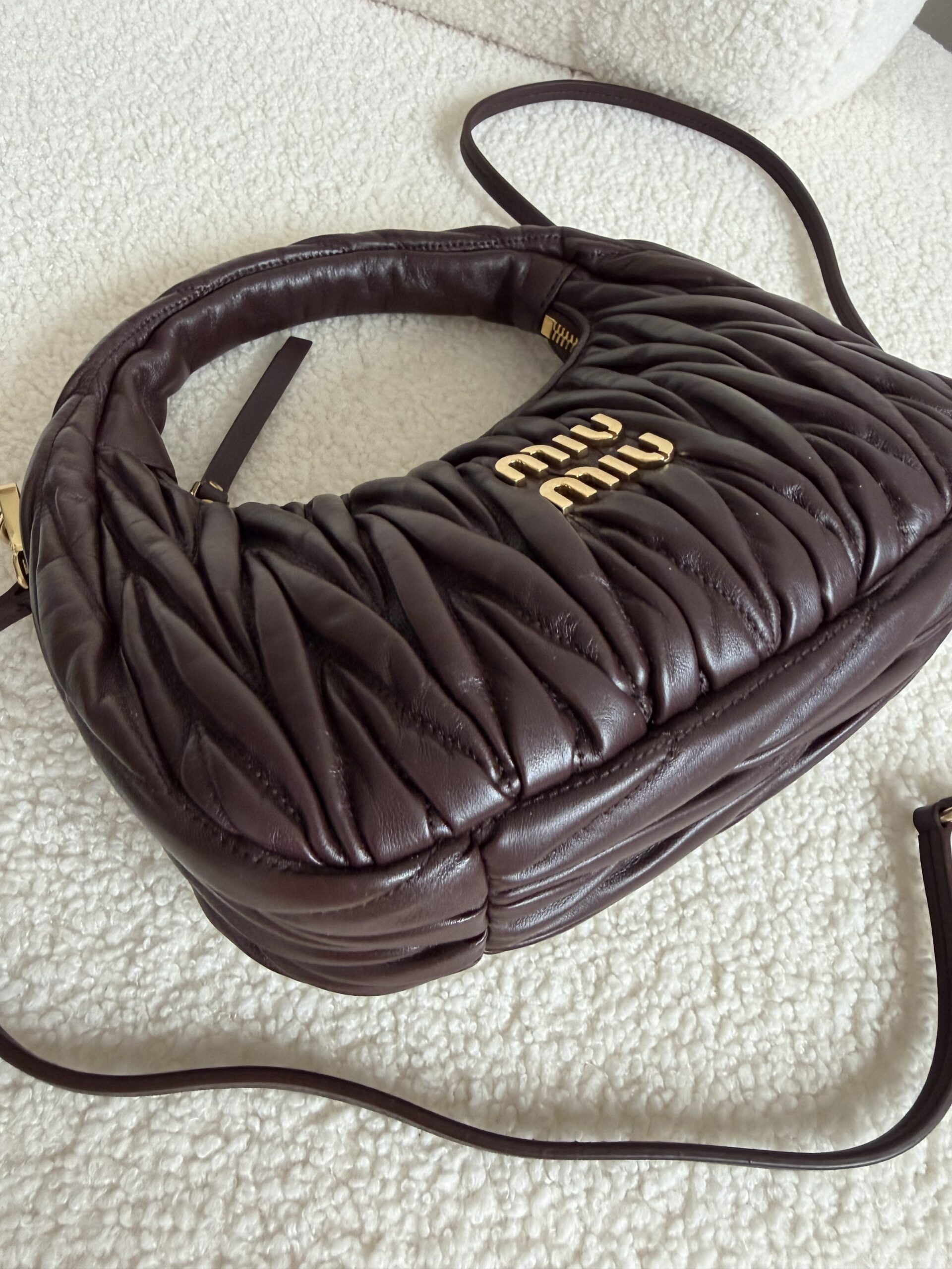 Miu Miu Wander matelassé suede bag burgundowa torebka