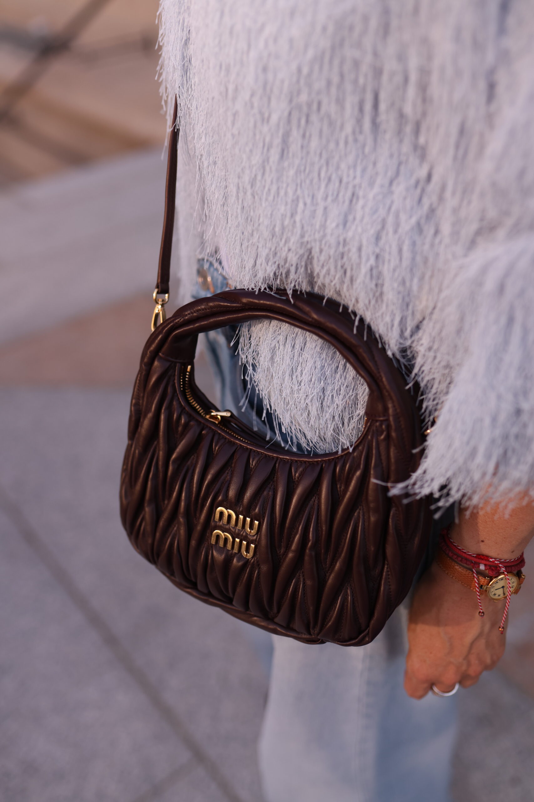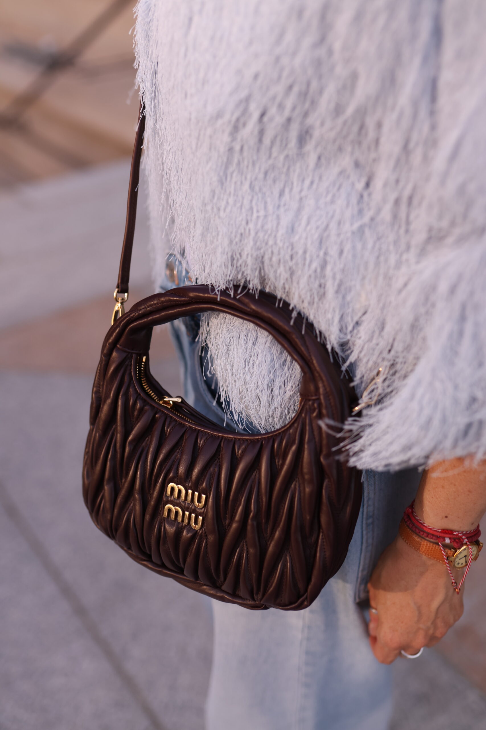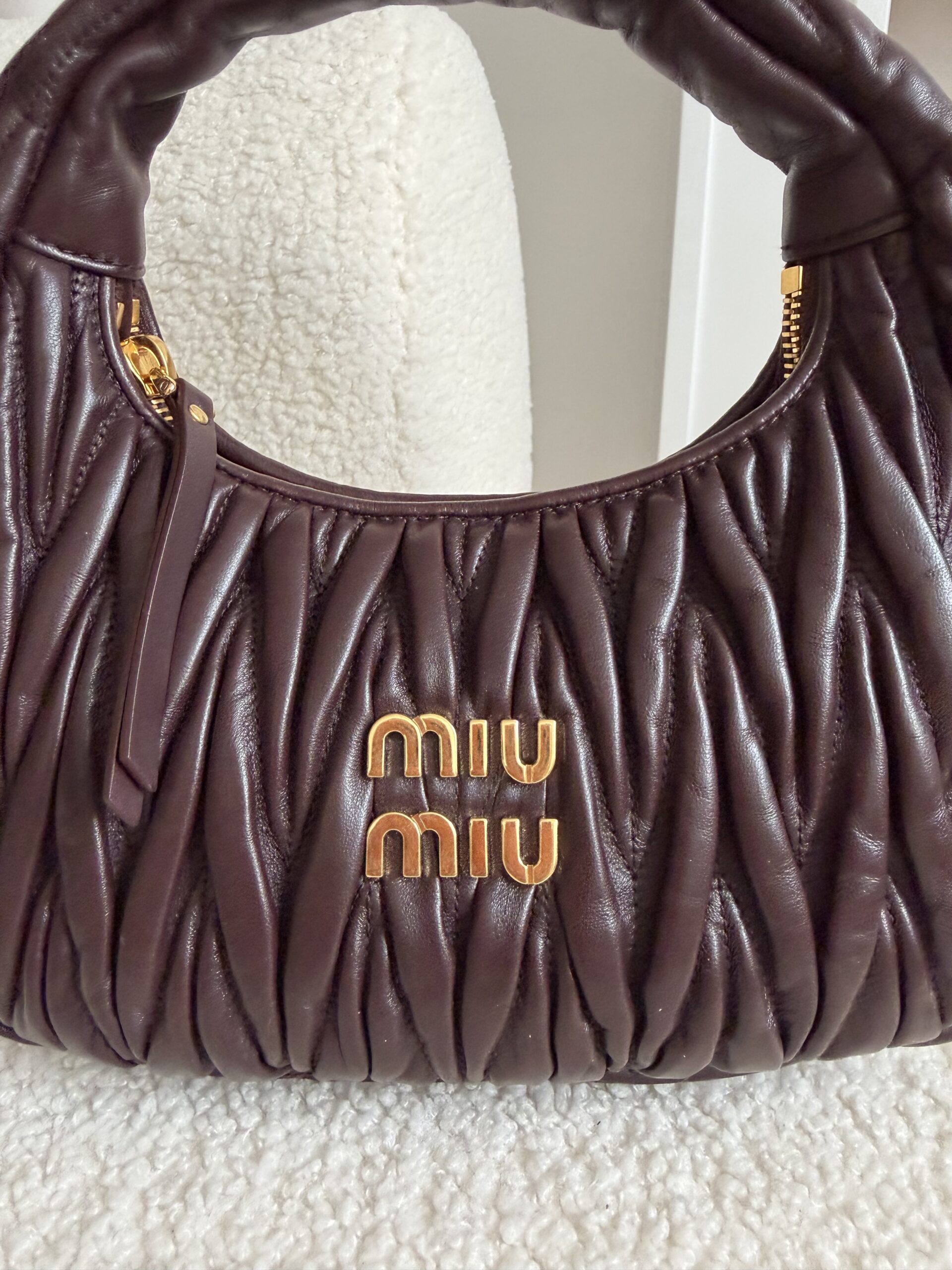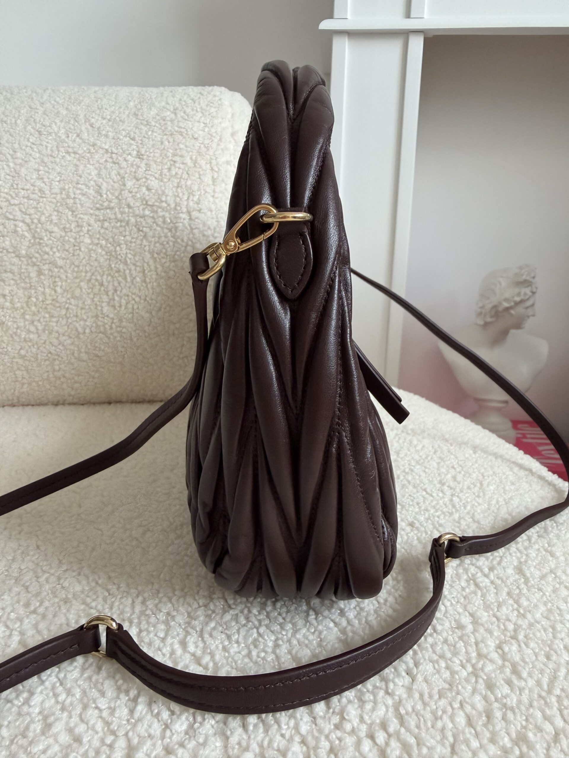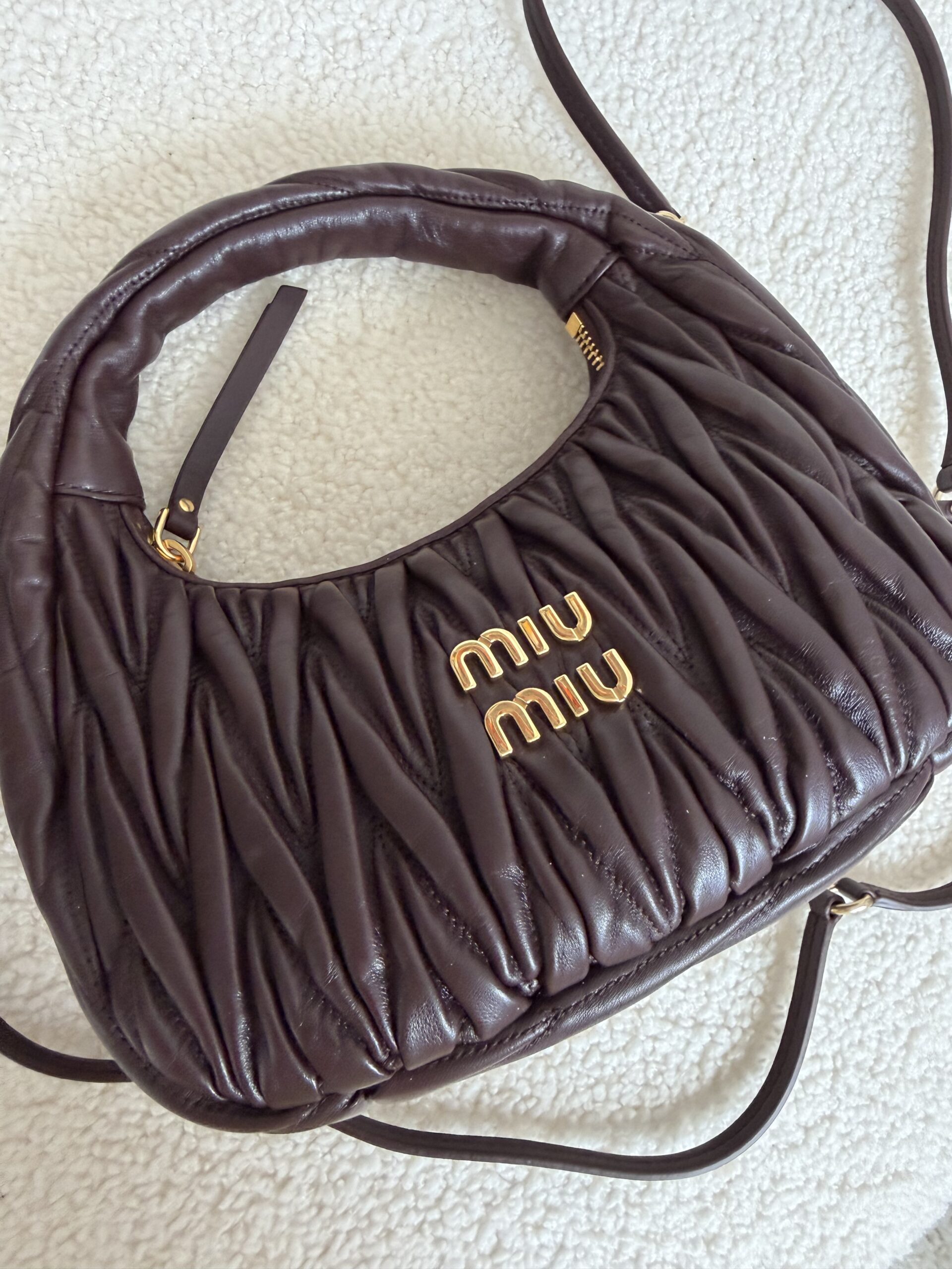 Miu Miu Wander matelassé suede bag burgundowa torebka