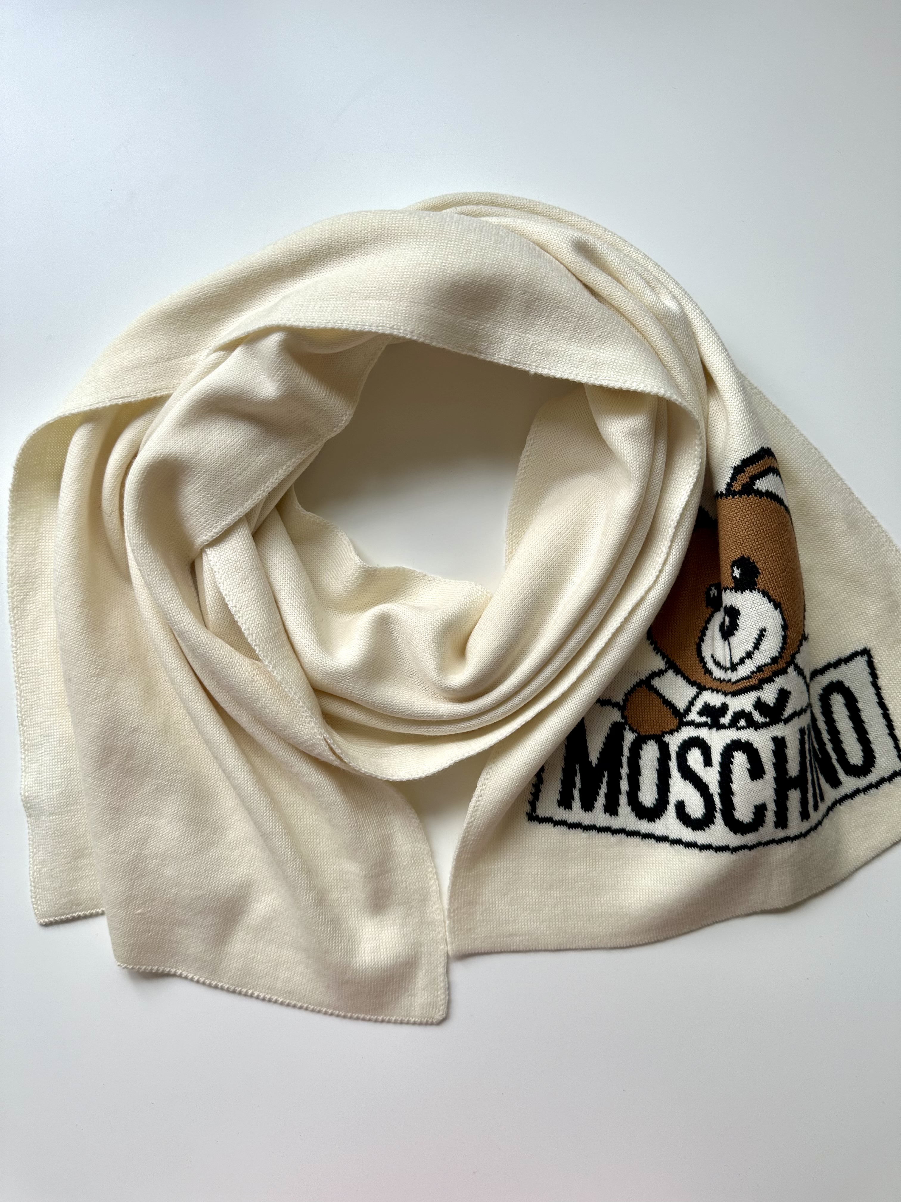 Moschino kremowy wełniany szalik