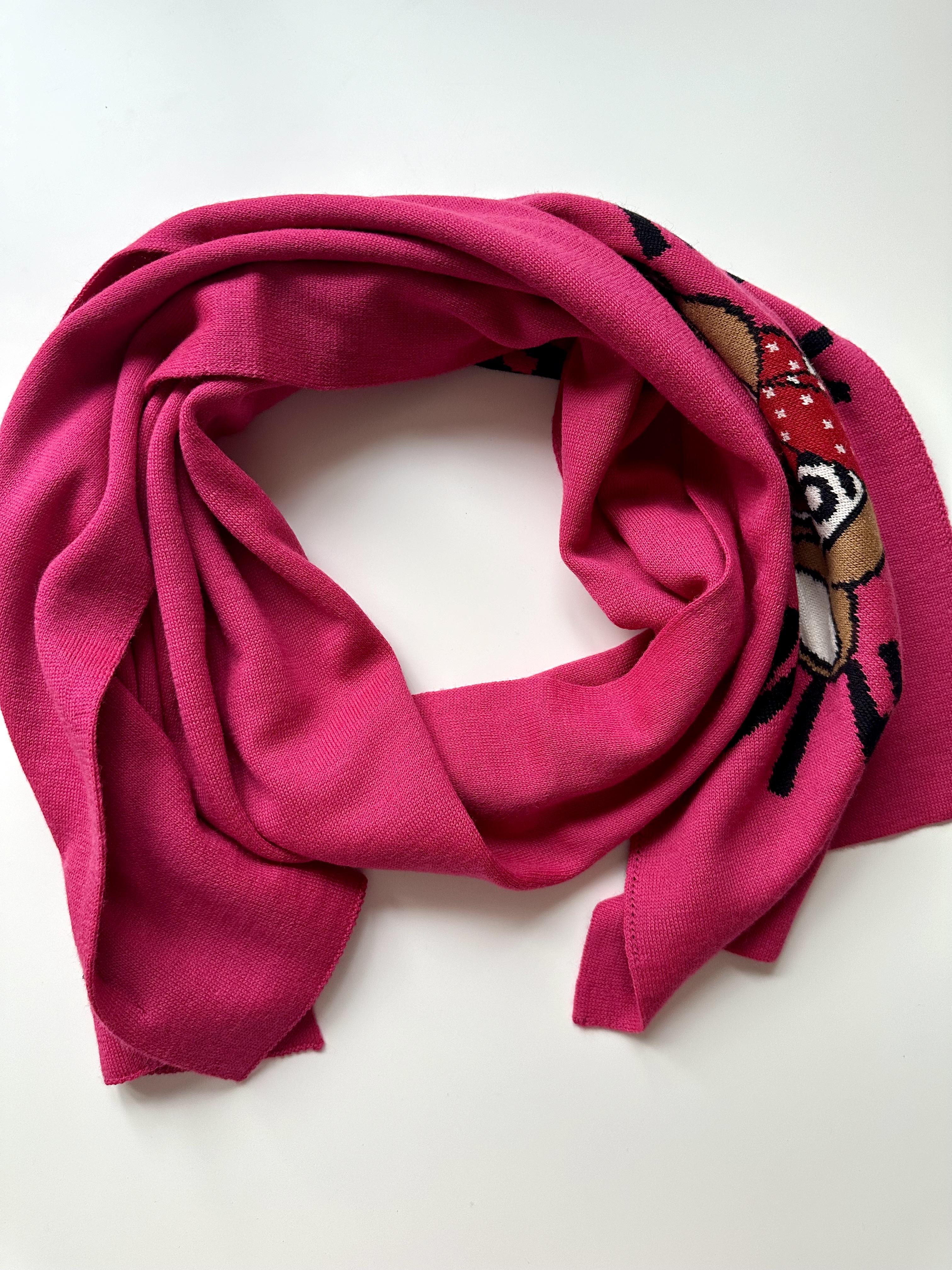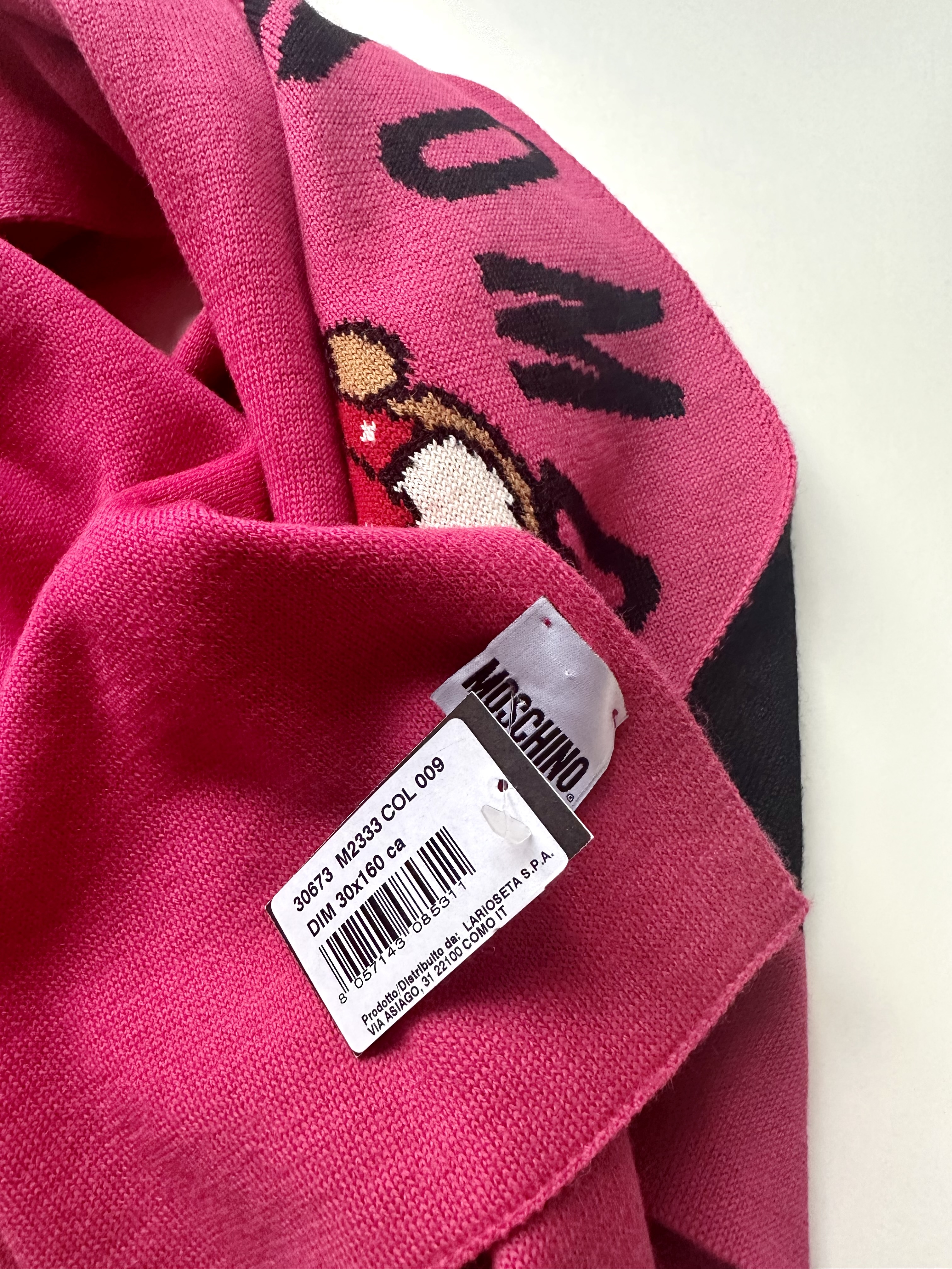 Moschino malinowy wełniany szalik