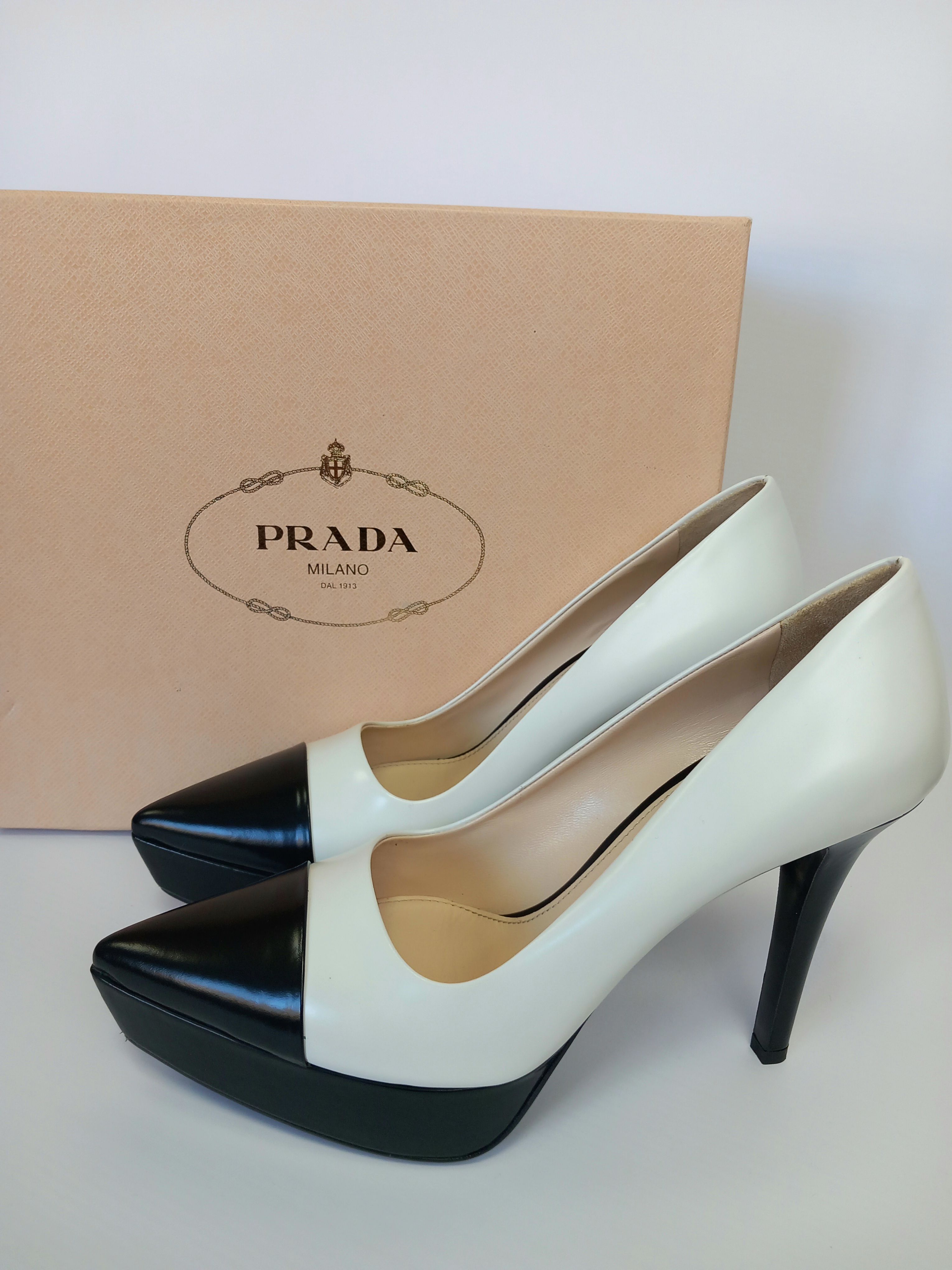 Prada klasyczne czarno białe szpilki 39