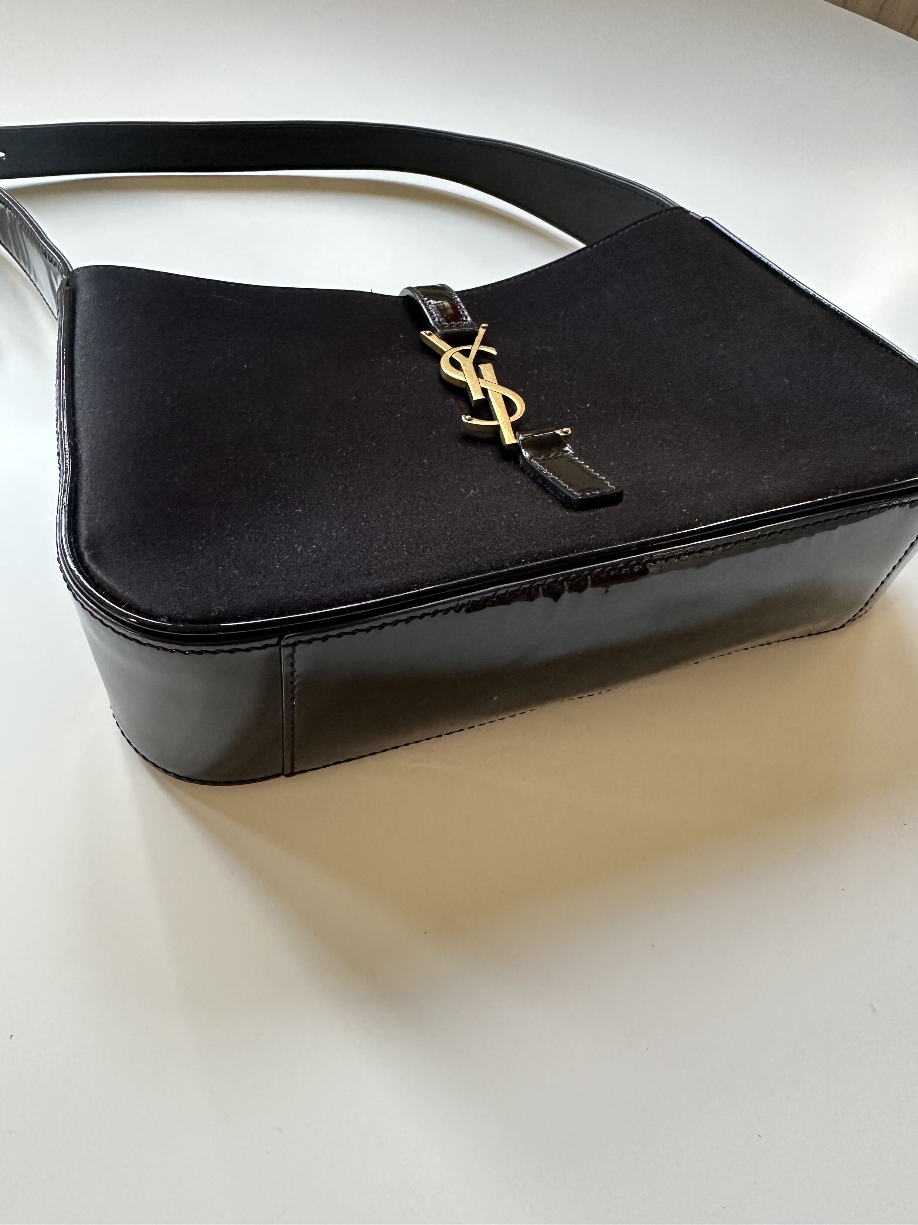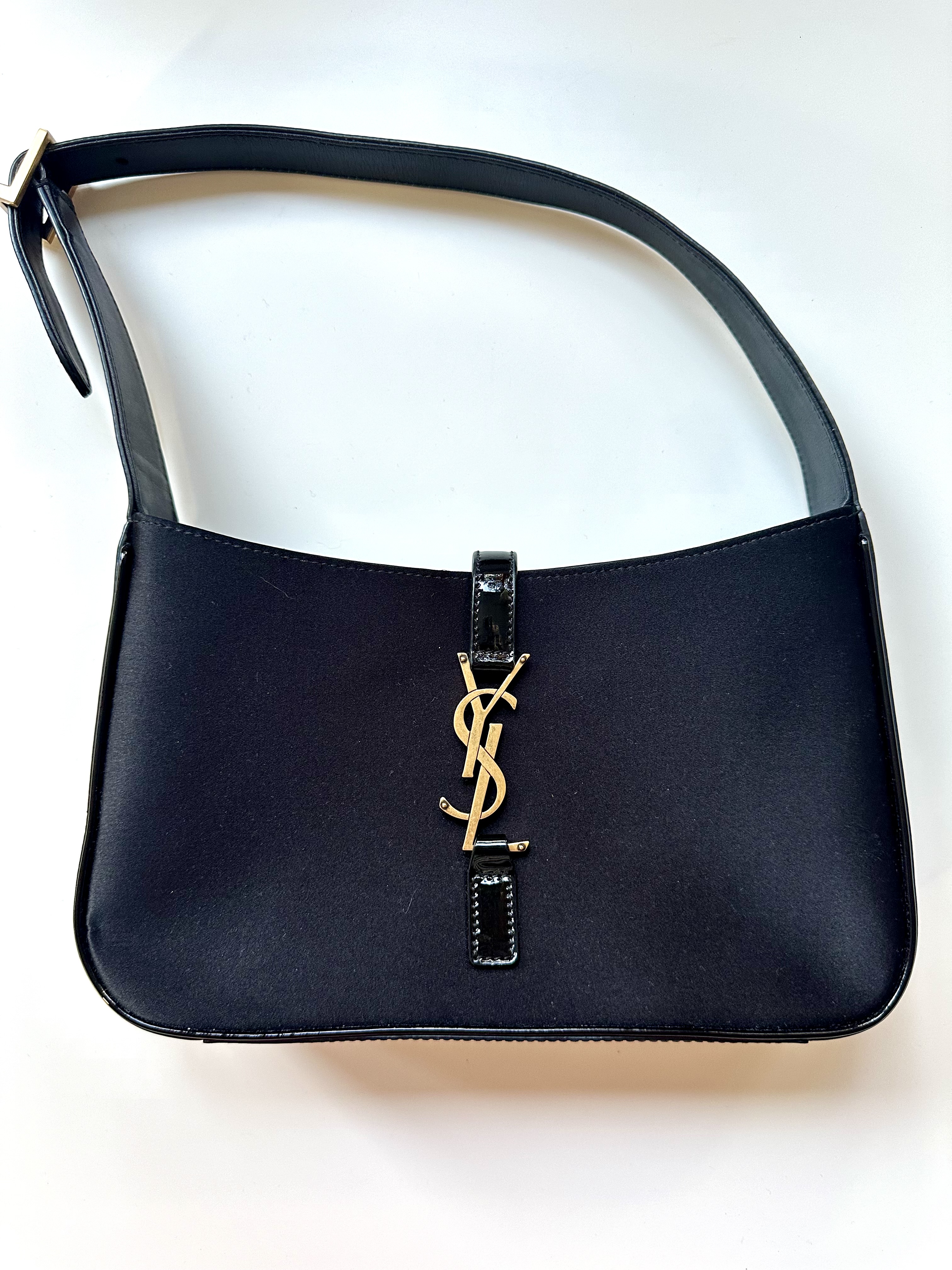 Saint Laurent LE 5 A 7 czarna satynowa torebka