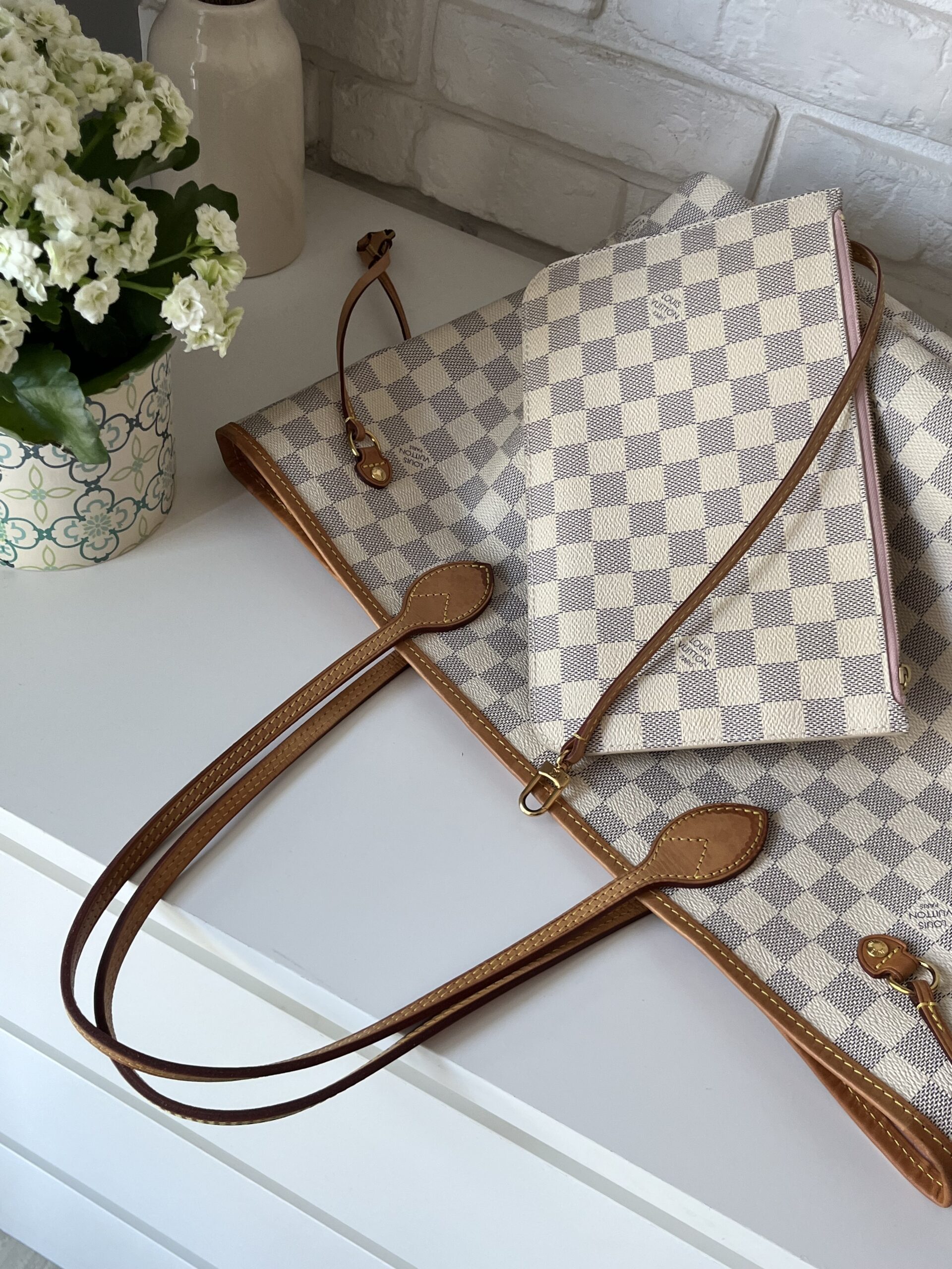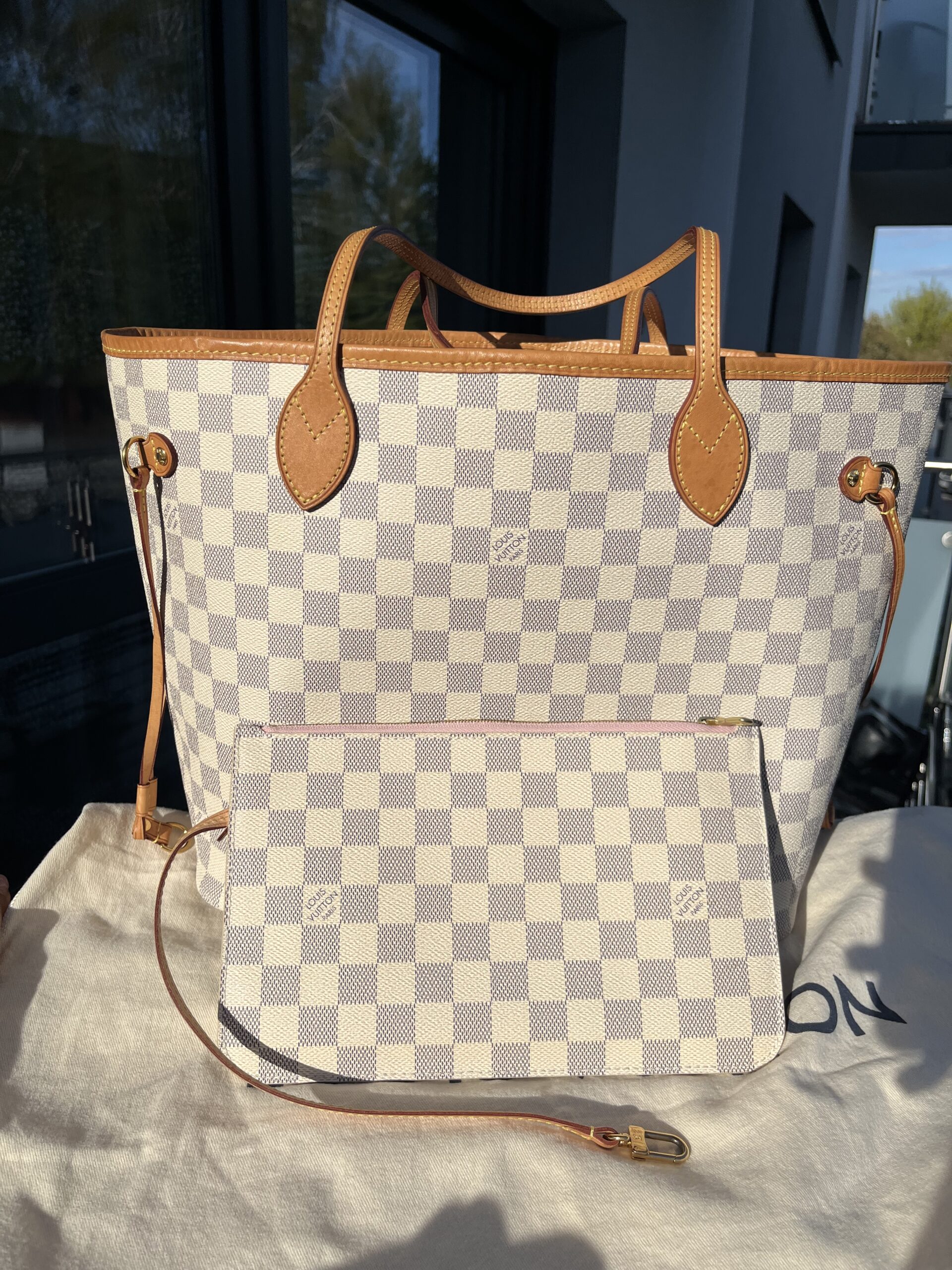 + 20 zł wysyłka DPDTorebka Louis vuitton Neverfull azur ebene z pochette oraz workiem.