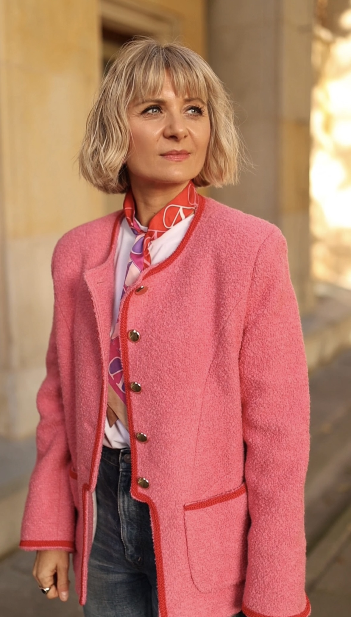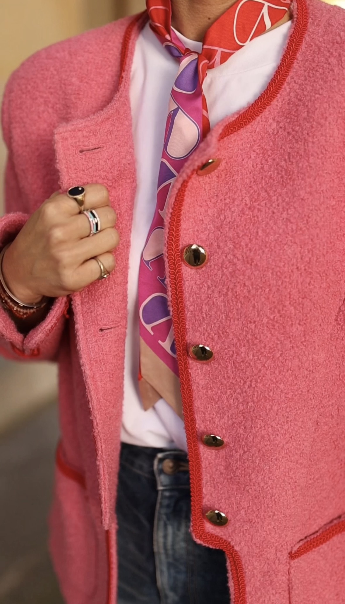 Apaszka jest dwustronna w czerwieni i różu