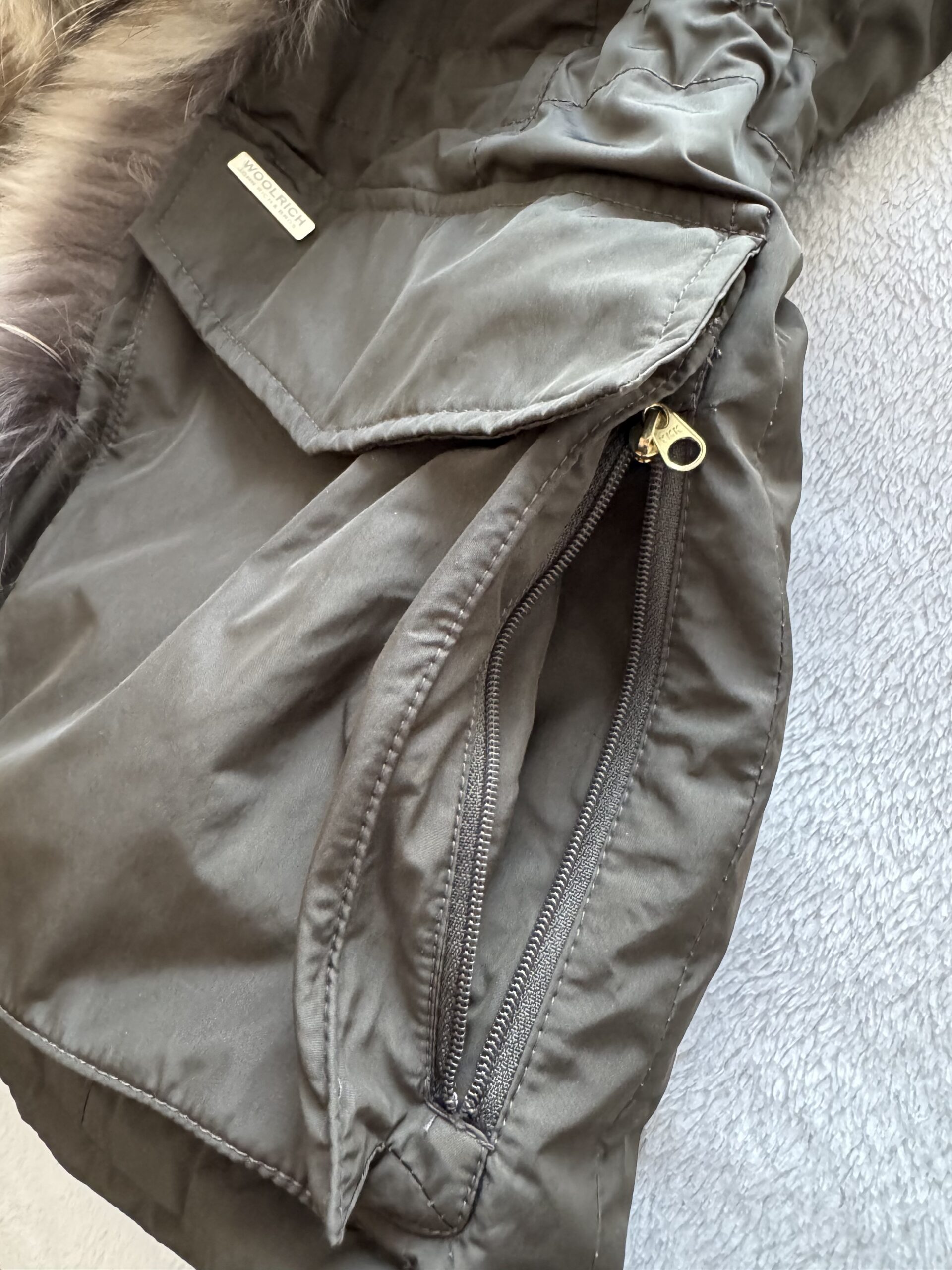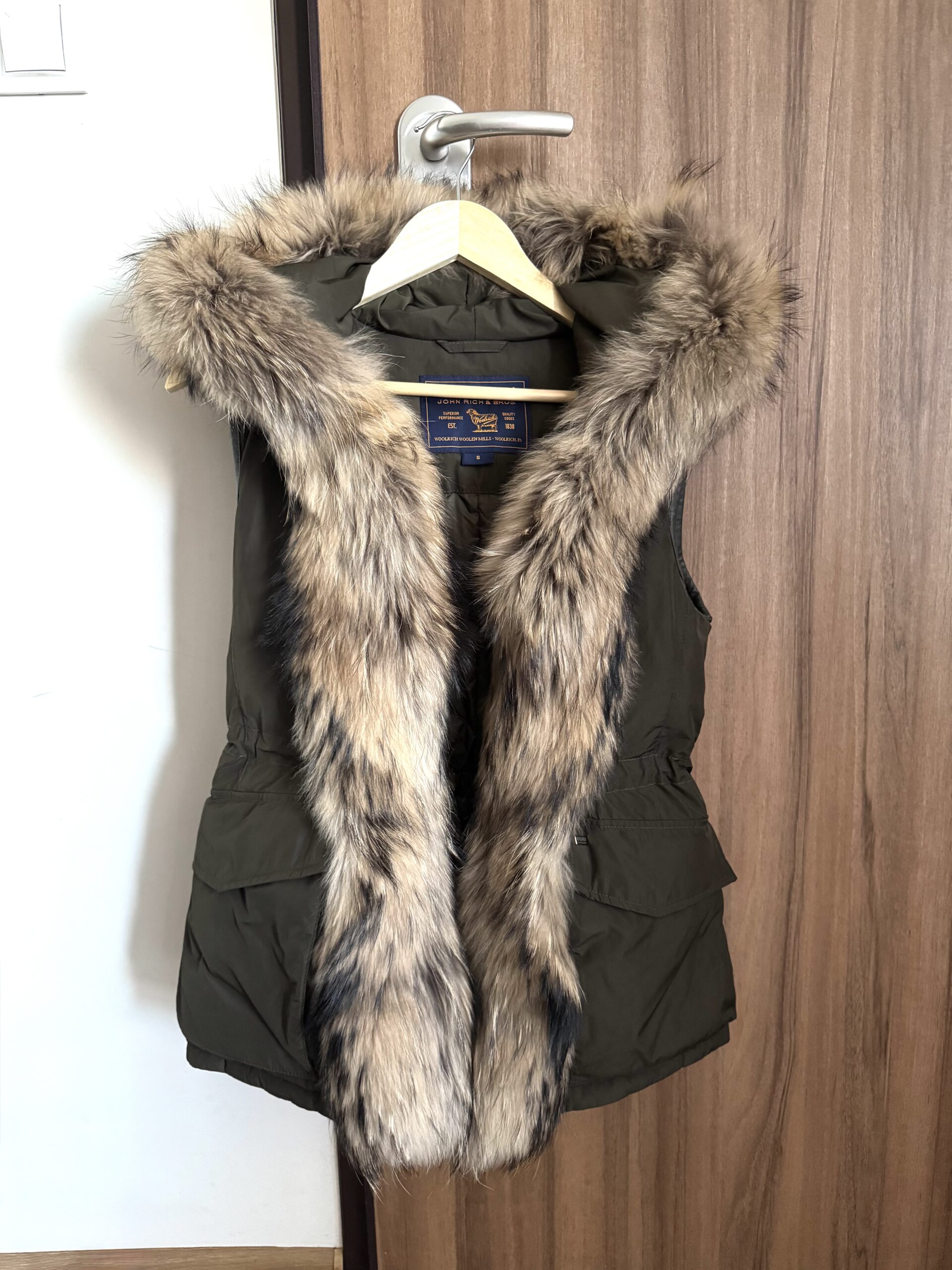 WOOLRICH – kamizelka puchowa bezrękawnik, kurta – lekka i ciepła damska kamizelka z naturalnym futrem z jenota